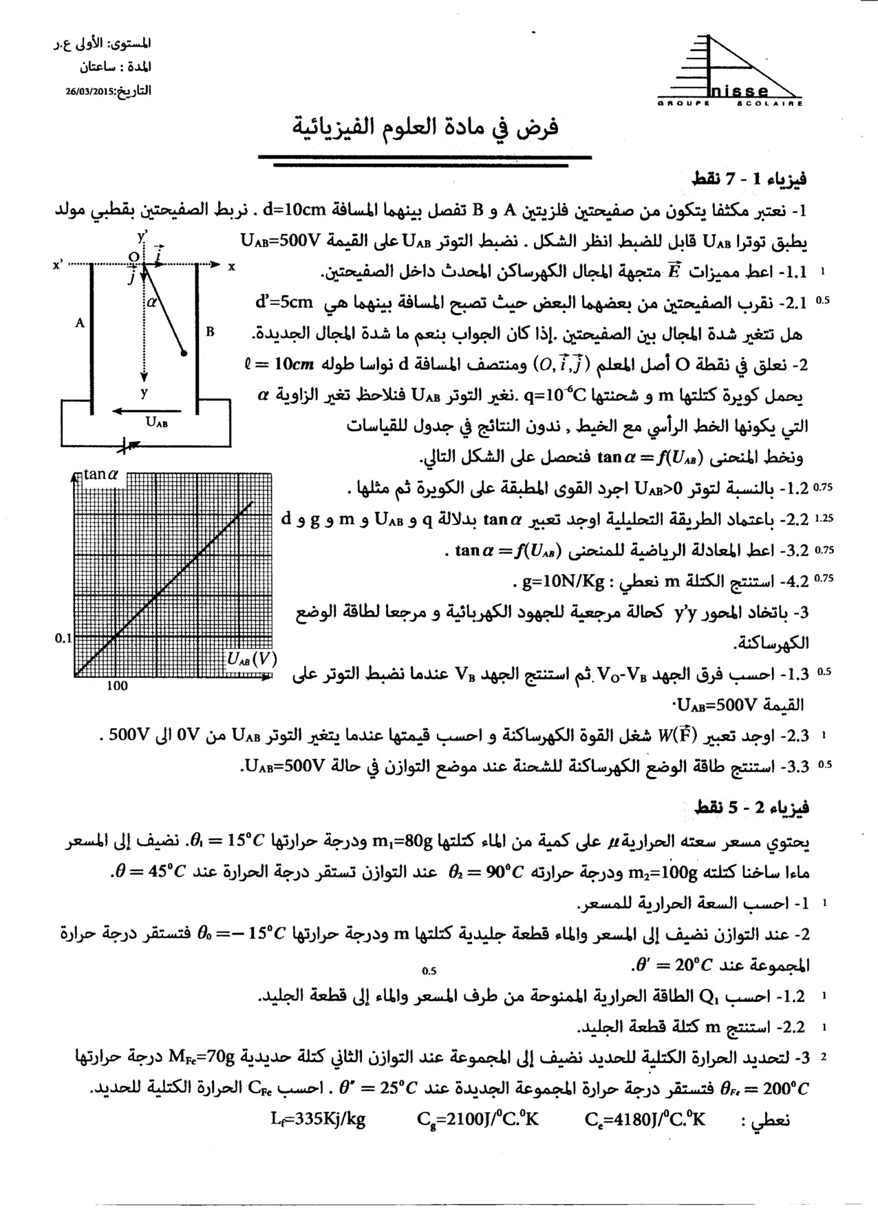 الفرض 1 نموذج 6 - الفيزياء والكيمياء أولى باك علوم رياضية الدورة الثانية