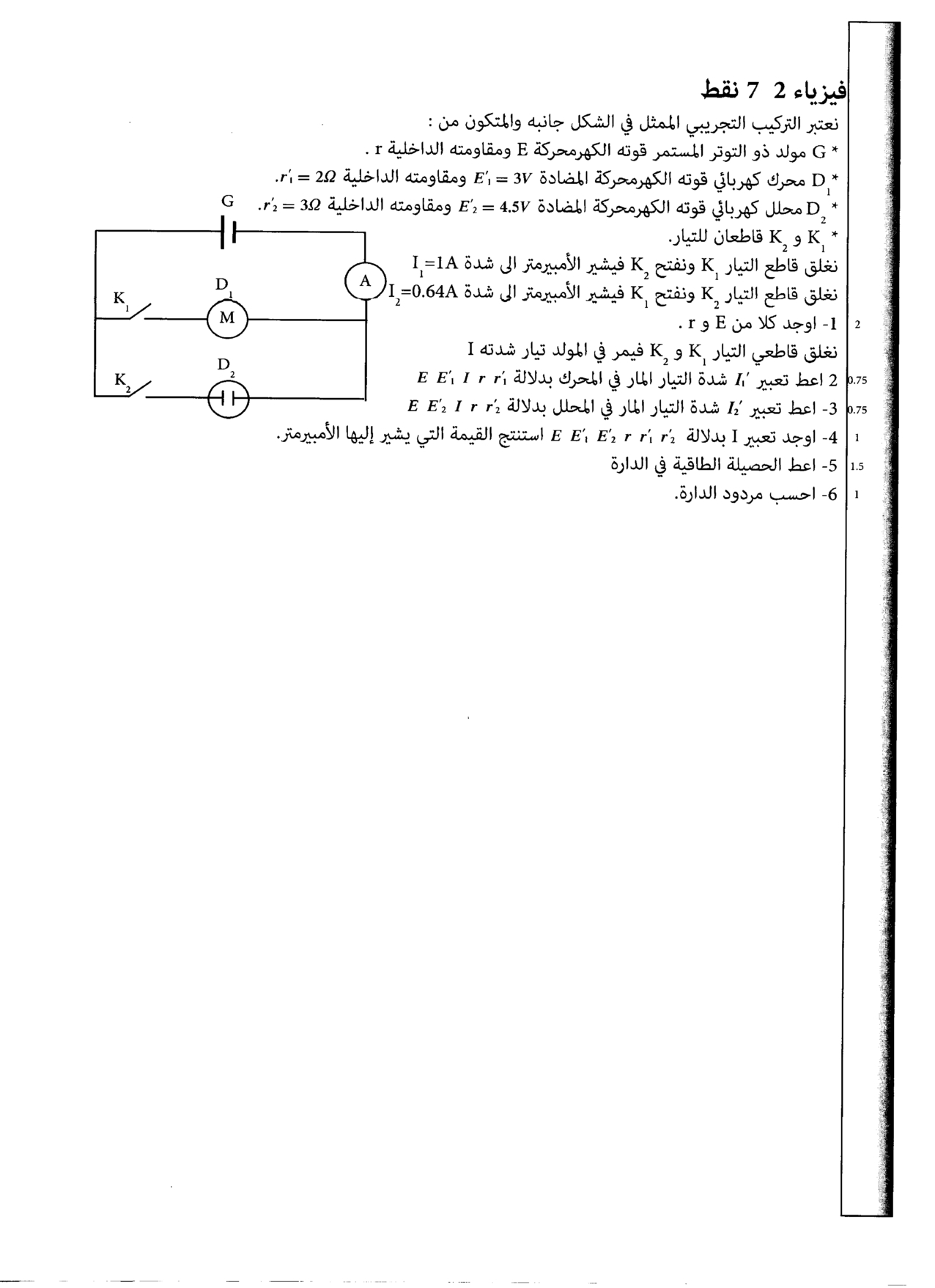 الفرض 1 نموذج 8 - الفيزياء والكيمياء أولى باك علوم رياضية الدورة الثانية