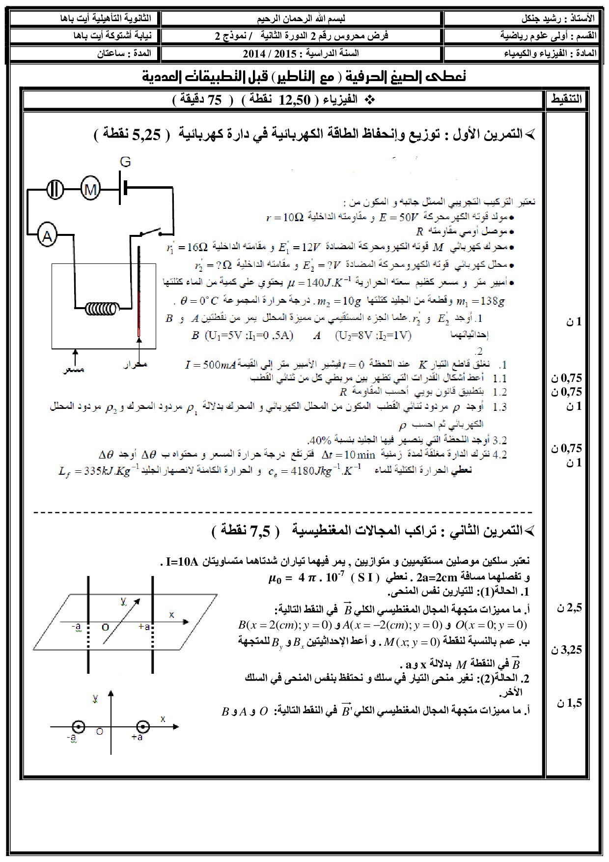 الفرض 2 نموذج 3 - الفيزياء والكيمياء أولى باك علوم رياضية الدورة الثانية