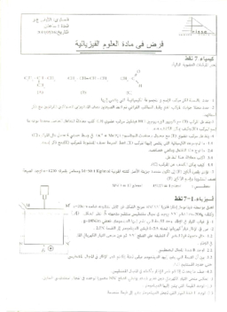 الفرض 2 نموذج 9 - الفيزياء والكيمياء أولى باك علوم رياضية الدورة الثانية