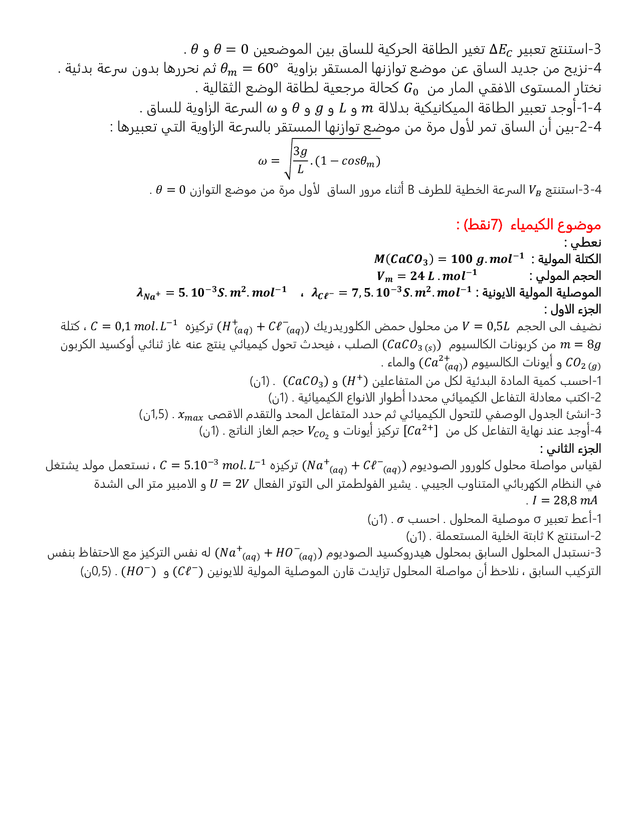 الفيزياء والكيمياء: الأولى باك علوم وتكنولوجيات ميكانيكية