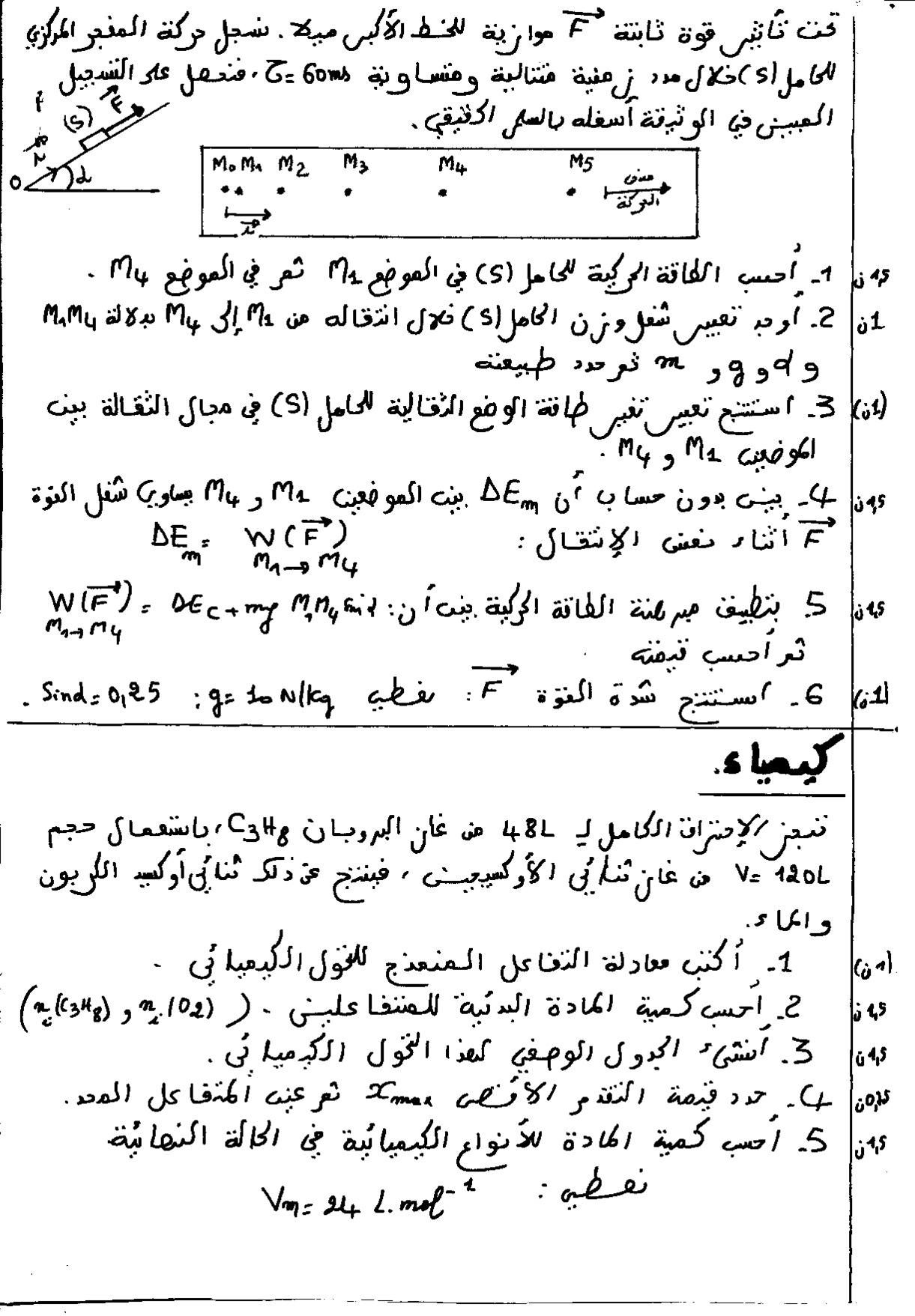 الفرض 2 نموذج 18 - الفيزياء والكيمياء أولى باك علوم تجريبية الدورة الأولى