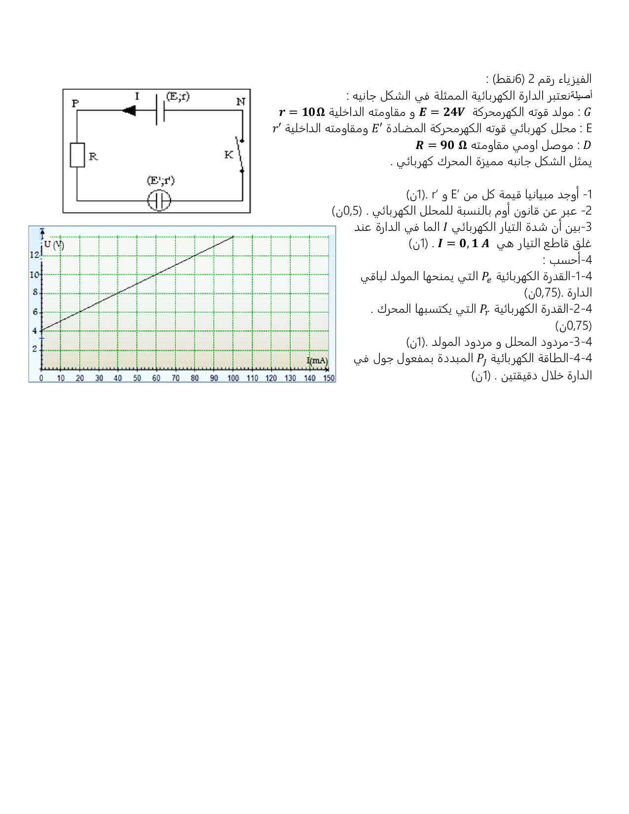 الفيزياء والكيمياء: الأولى باك علوم وتكنولوجيات كهربائية