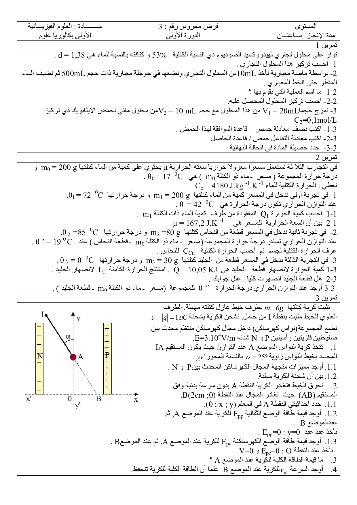 الفرض 3 نموذج 13 - الفيزياء والكيمياء أولى باك علوم تجريبية الدورة الأولى