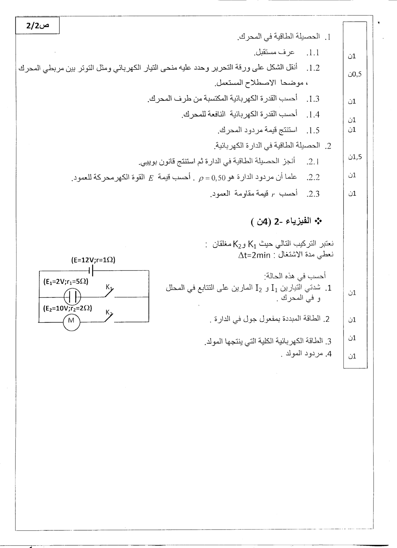 الفرض 1 نموذج 11 - الفيزياء والكيمياء أولى باك علوم تجريبية الدورة الثانية