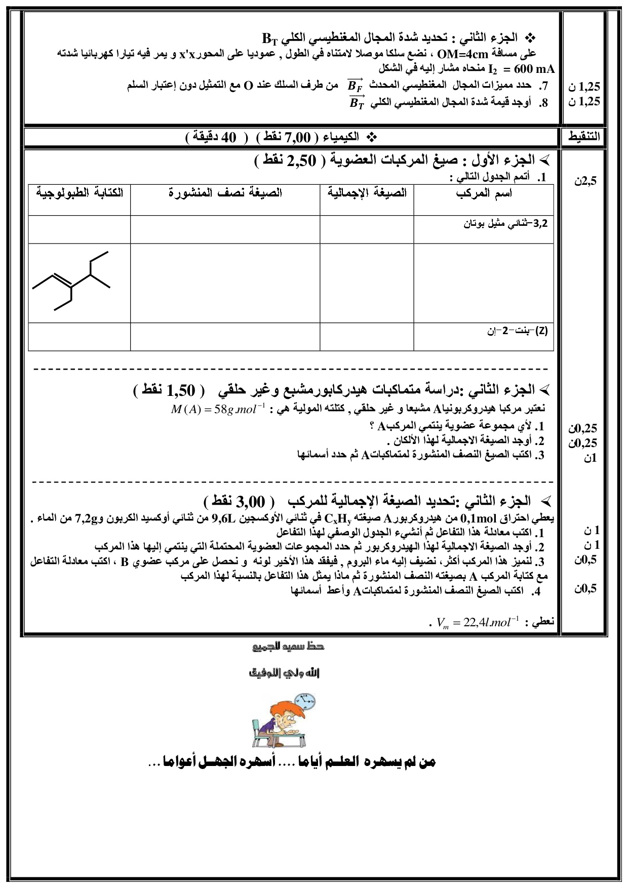 الفرض 2 نموذج 1 - الفيزياء والكيمياء أولى باك علوم تجريبية الدورة الثانية