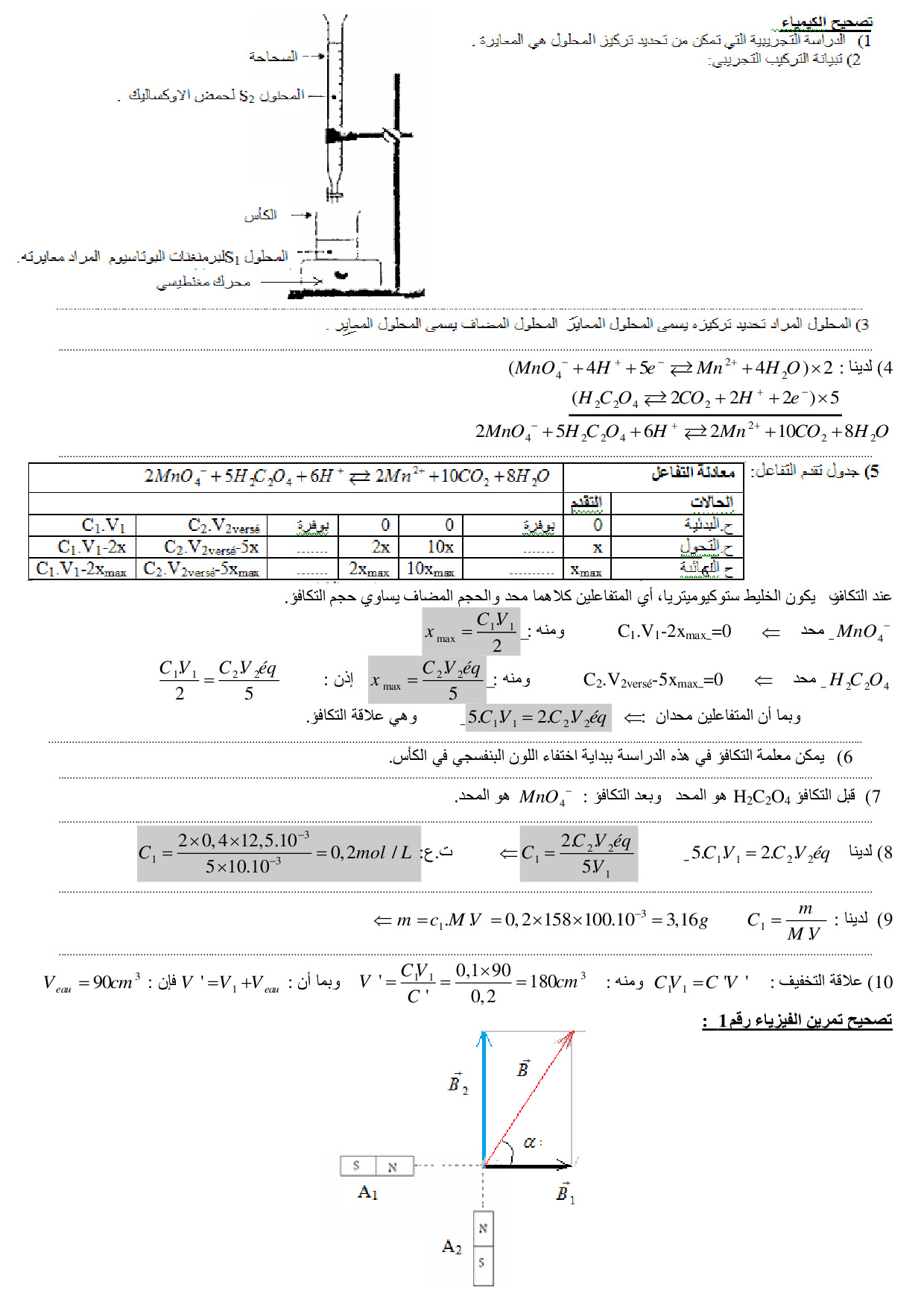 الفرض 2 نموذج 2 - الفيزياء والكيمياء أولى باك علوم تجريبية الدورة الثانية (التصحيح)