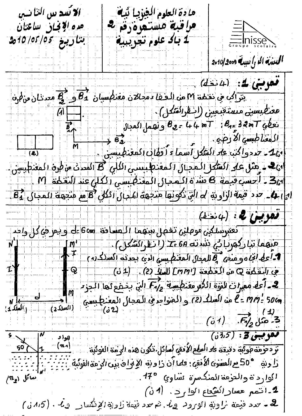 الفرض 2 نموذج 14 - الفيزياء والكيمياء أولى باك علوم تجريبية الدورة الثانية