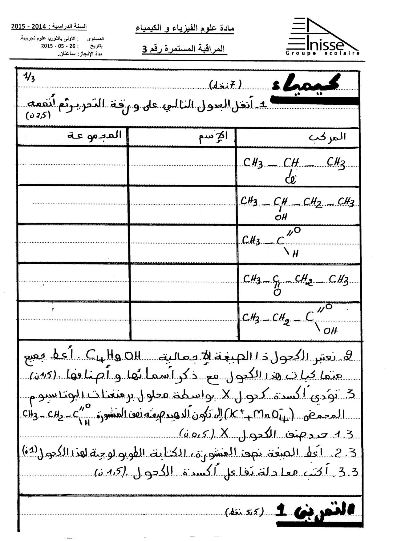 الفرض 3 نموذج 6 - الفيزياء والكيمياء أولى باك علوم تجريبية الدورة الثانية
