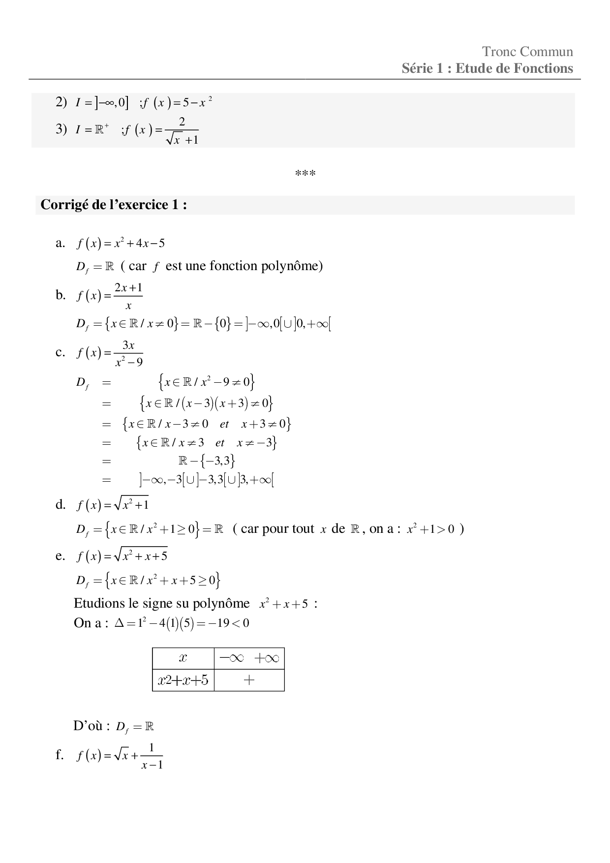 Généralités sur les fonctions - Corrigé série d'exercices 4