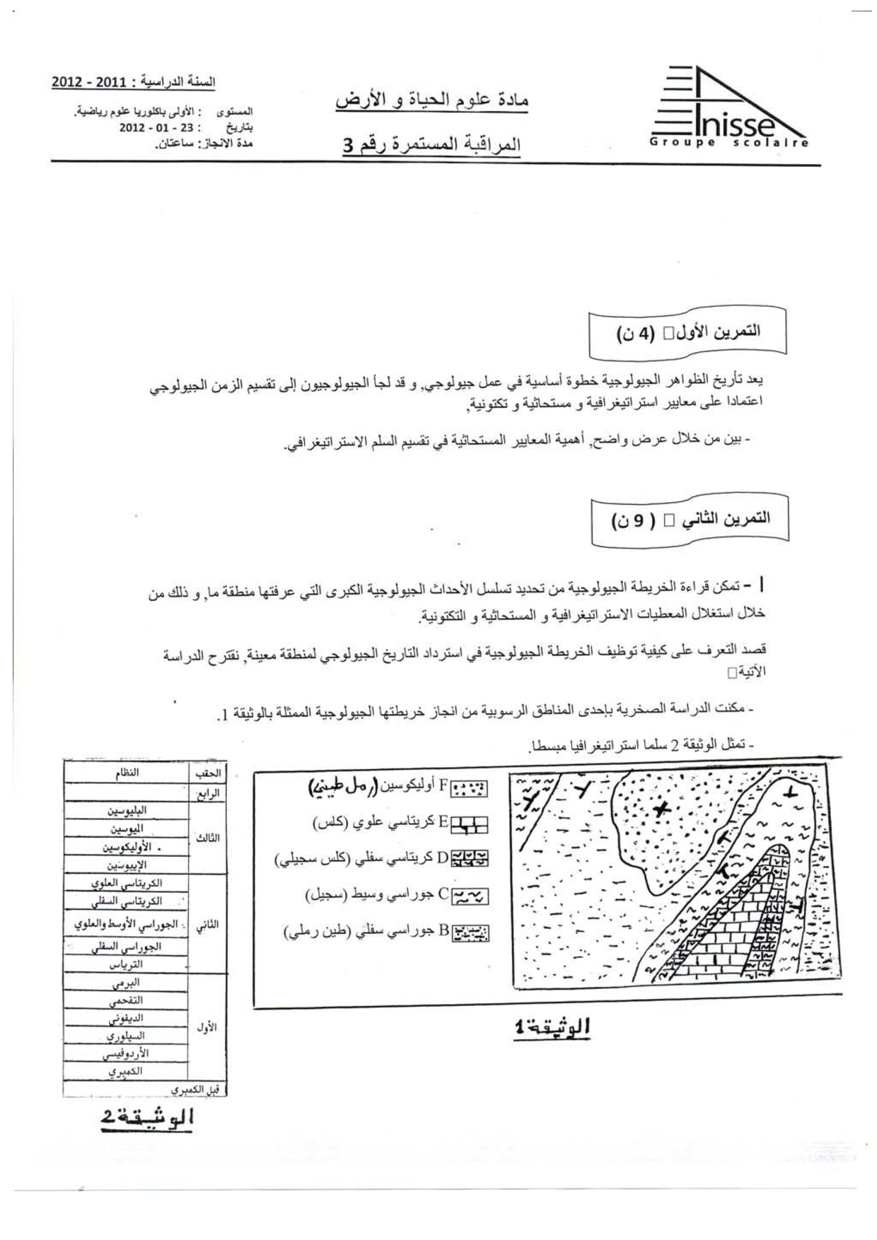علوم الحياة والارض: الأولى باك علوم رياضية