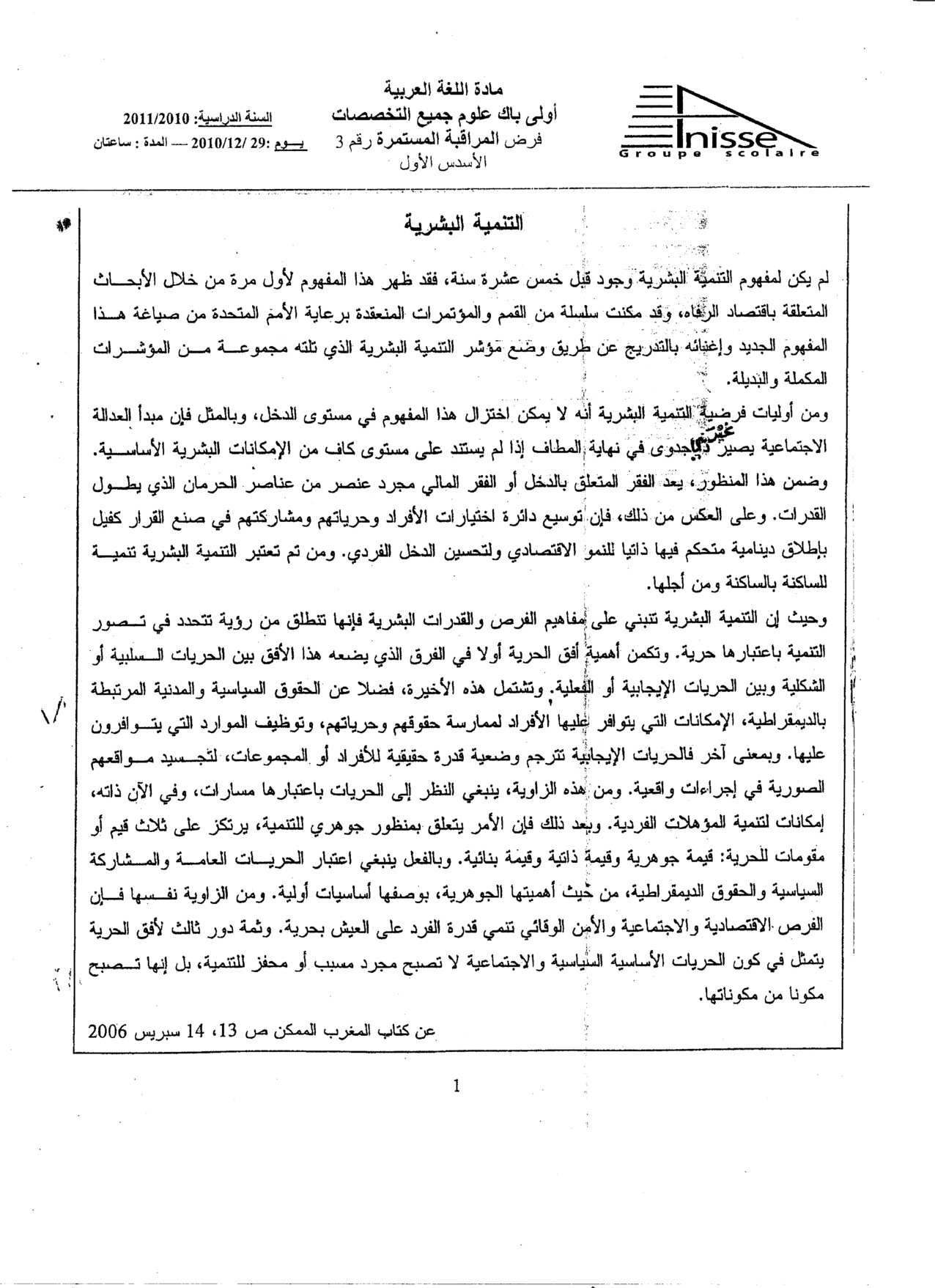 الفرض 2 نموذج 9 - اللغة العربية أولى باك الدورة الأولى