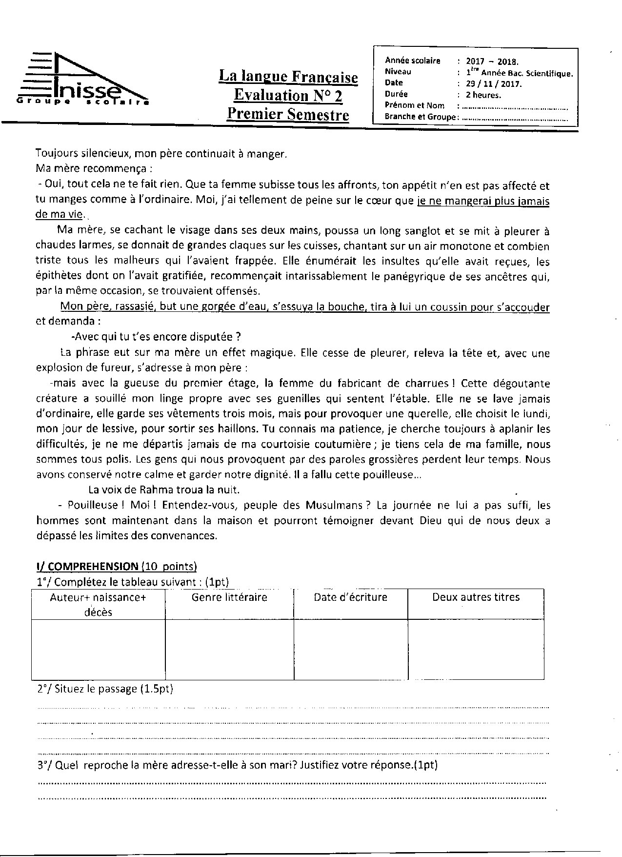 Français: 1er BAC Sciences Mathématiques