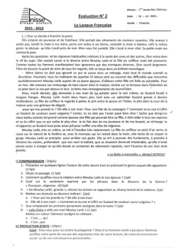 Devoir 2 Modèle 8 - Français 1er Bac Semestre 1