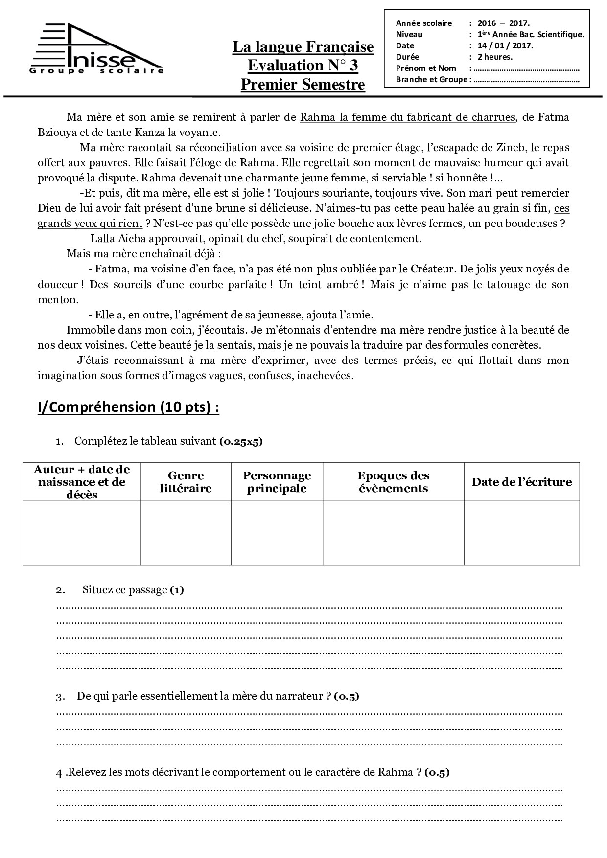 Français: 1er BAC Sciences Economiques et Gestion