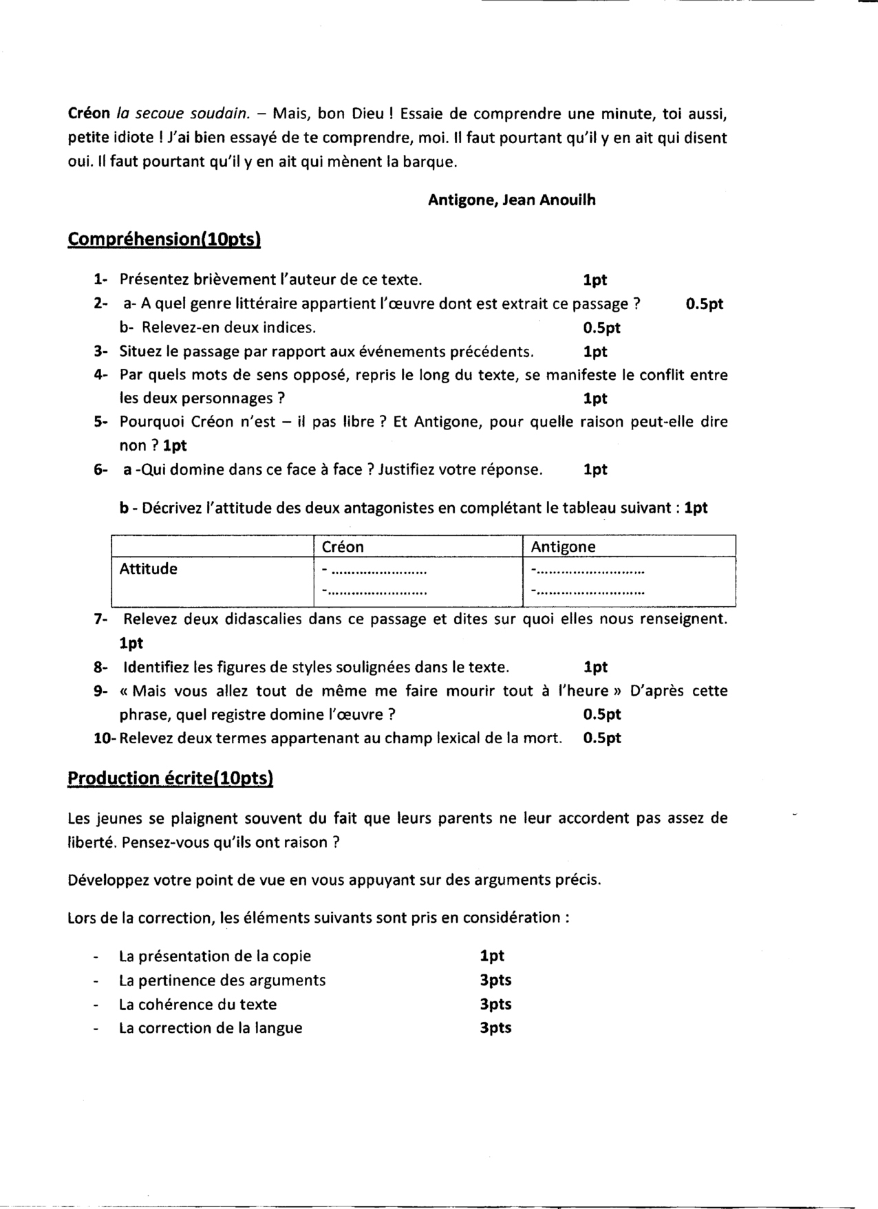 Devoir 3 Modèle 9 - Français 1er Bac Semestre 1