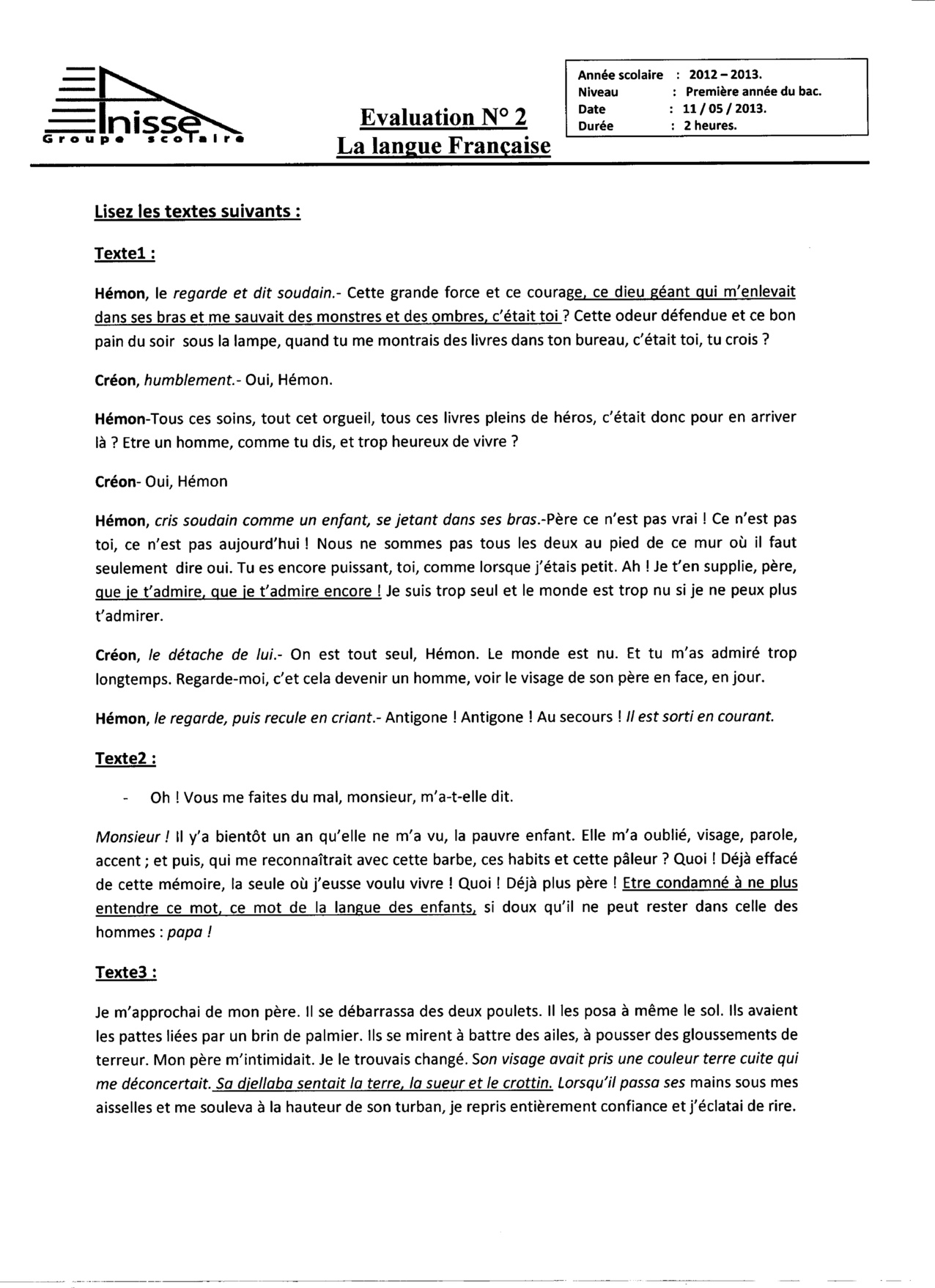 Devoir 2 Modèle 6 - Français 1er Bac Semestre 2