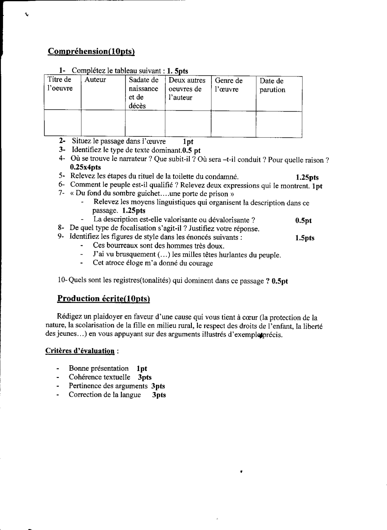 Français: 1er BAC Lettres et Sciences Humaines