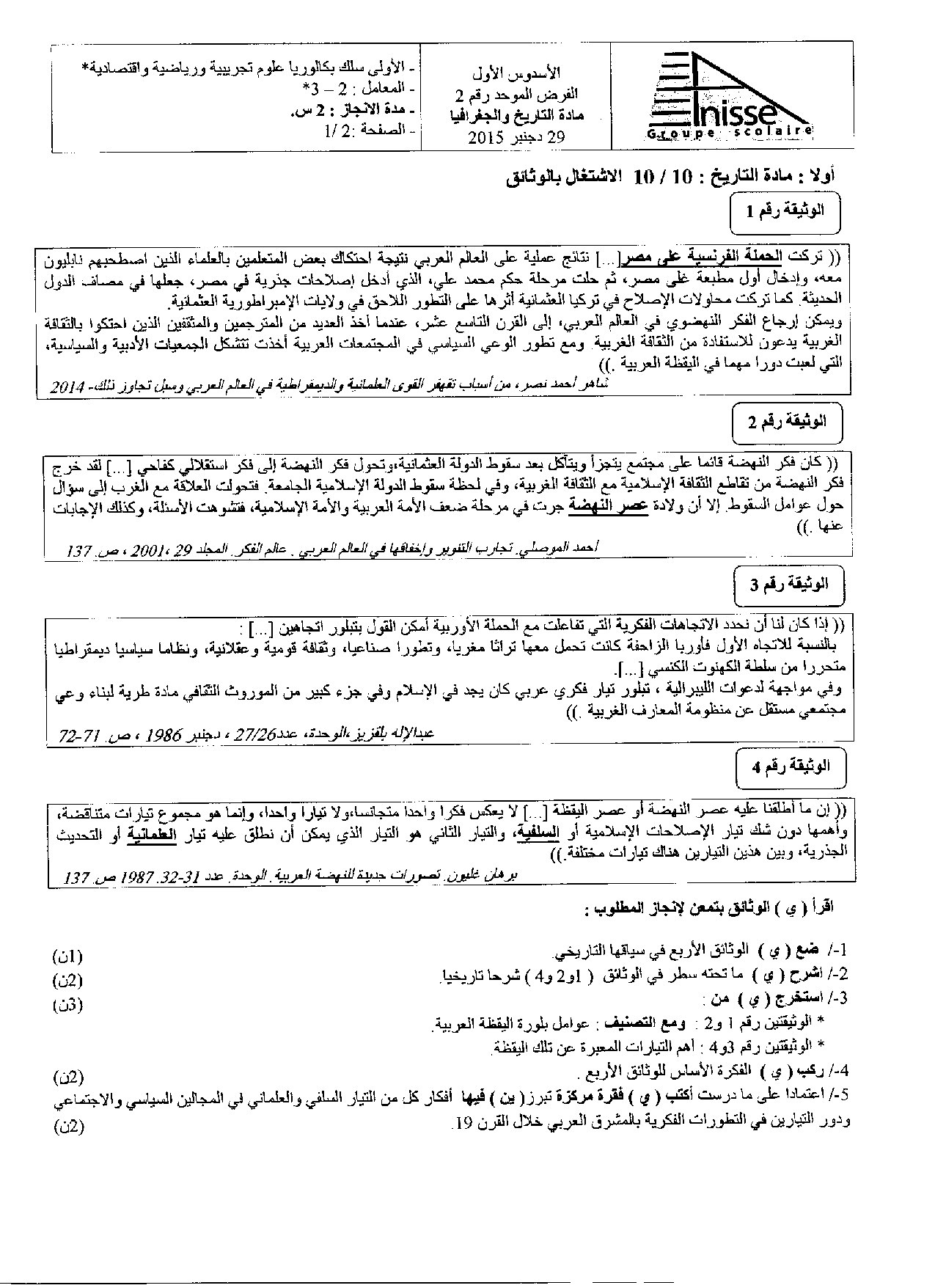 الفرض 2 نموذج 4 - الإجتماعيات أولى باك الدورة الأولى