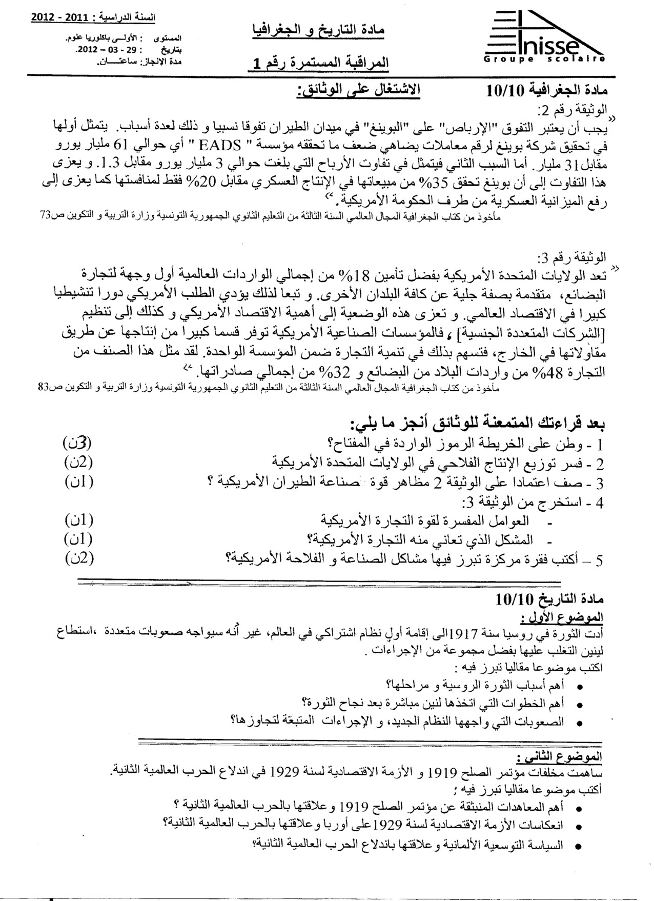 الفرض 1 نموذج 7 - الإجتماعيات أولى باك الدورة الثانية
