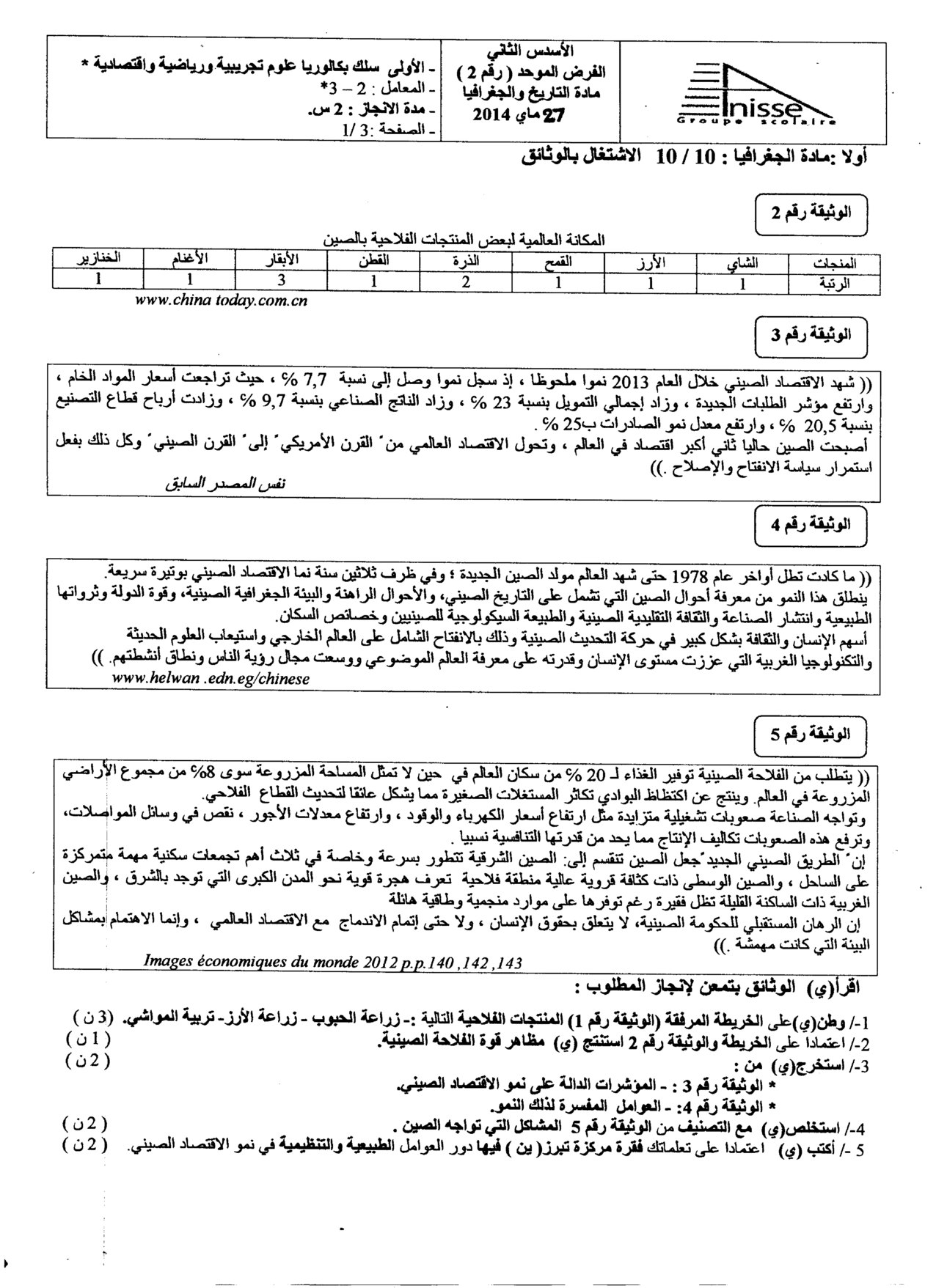 الفرض 2 نموذج 4 - الإجتماعيات أولى باك الدورة الثانية