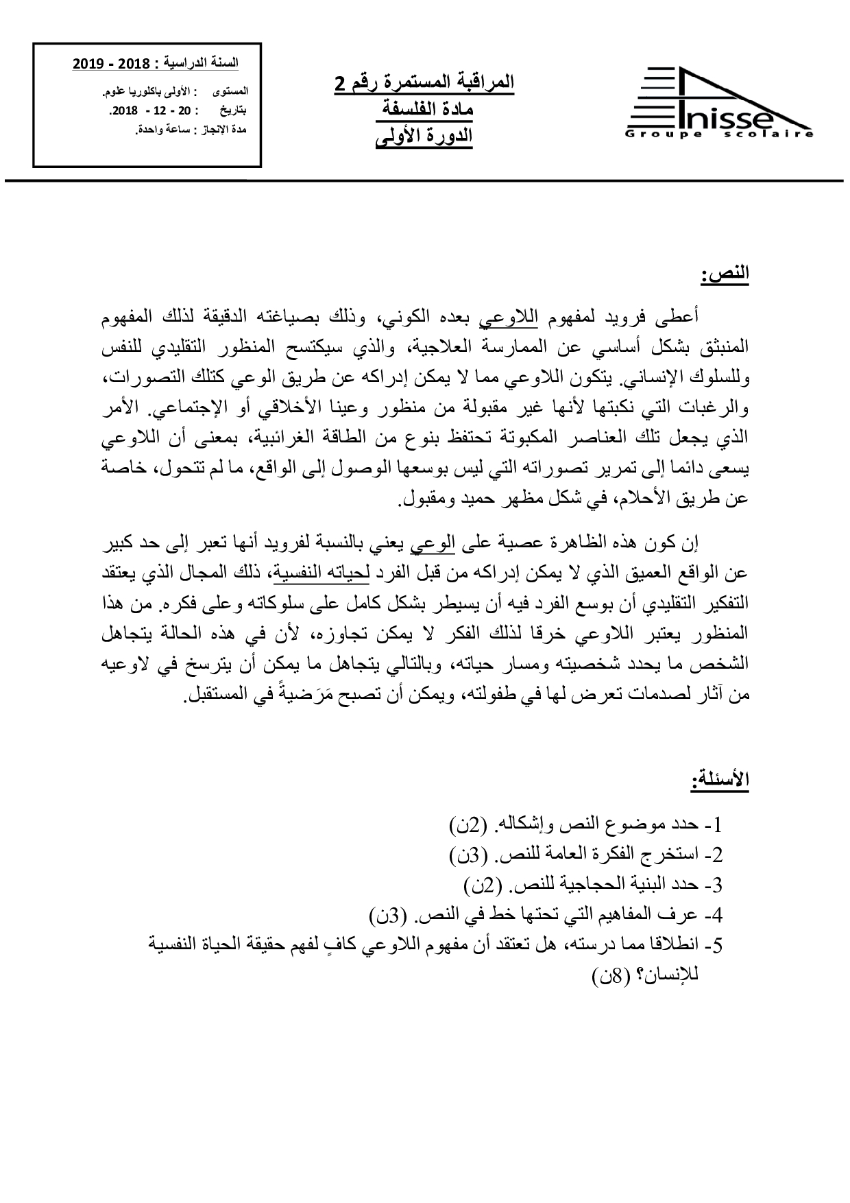 الفلسفة: الأولى باك علوم إقتصادية وتدبير