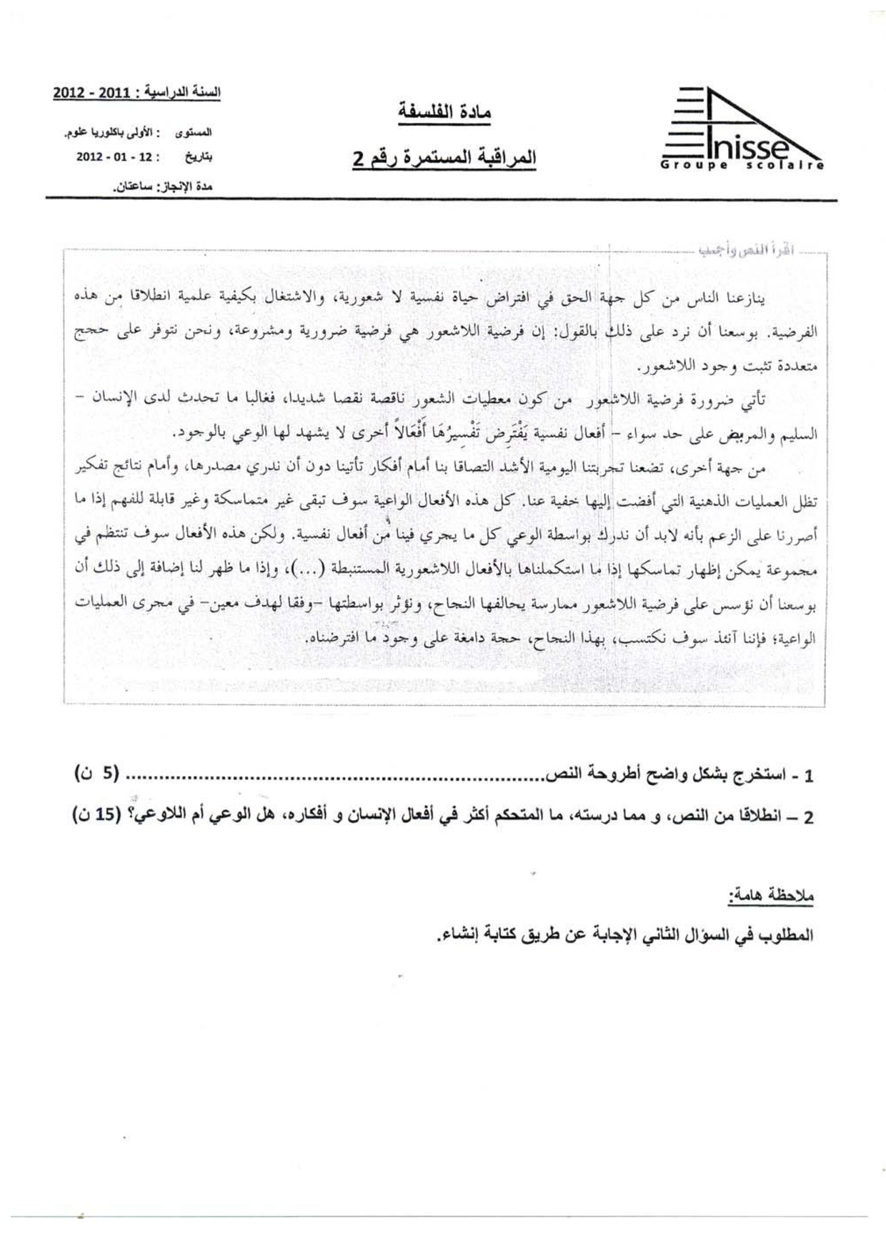 الفرض 2 نموذج 8 - الفلسفة أولى باك الدورة الأولى