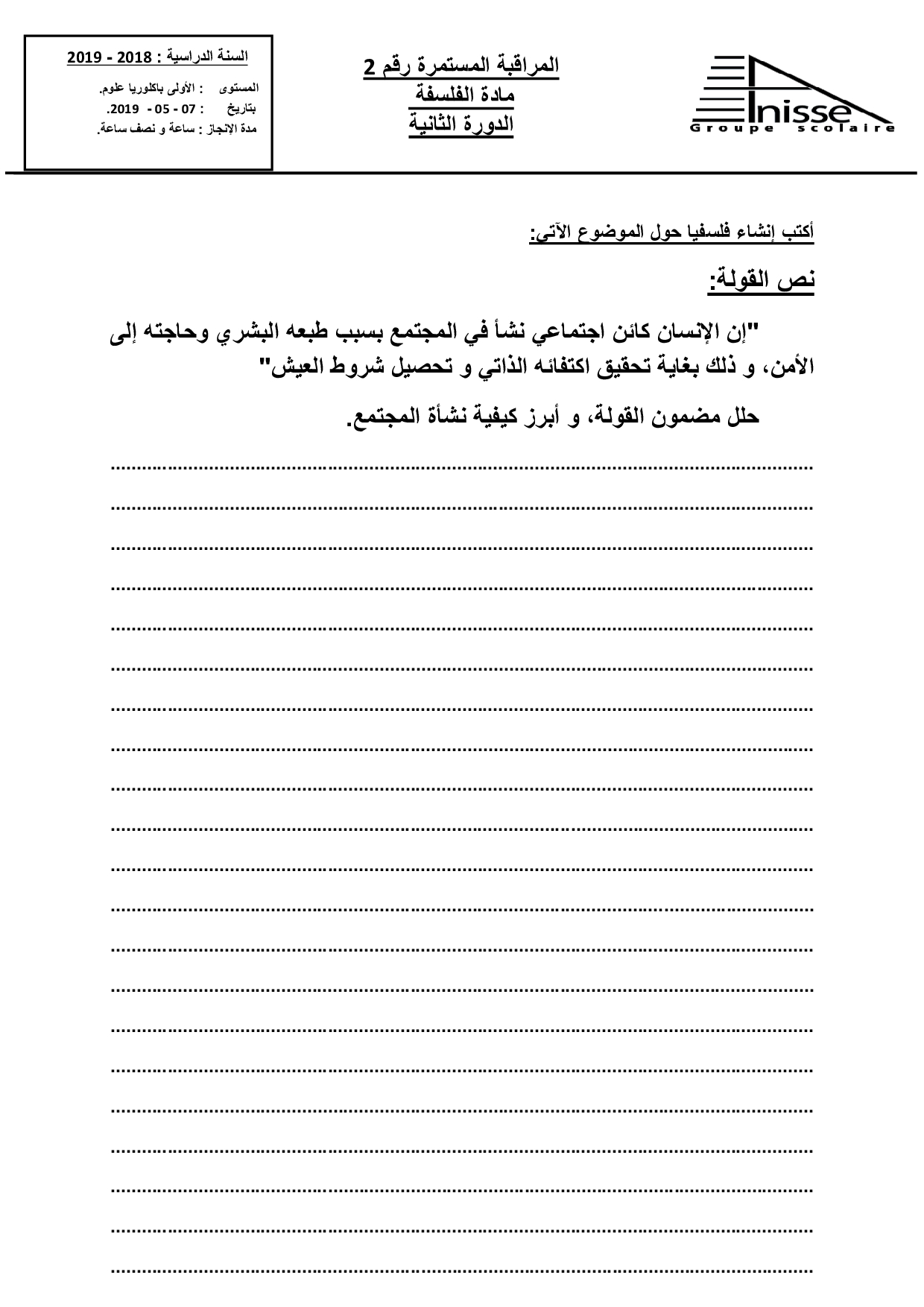 الفرض 2 نموذج 1 - الفلسفة أولى باك الدورة الثانية
