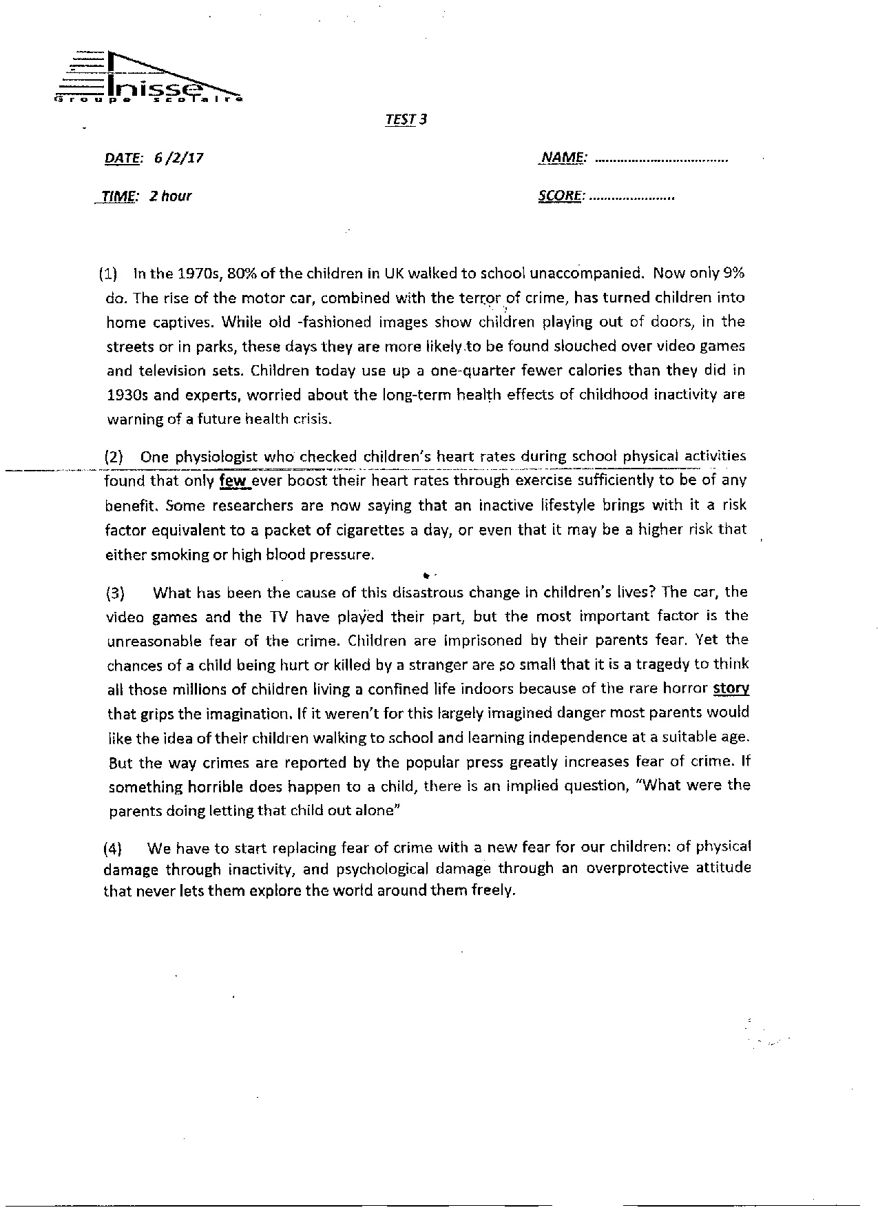 Test 3 Model 3 - English 1st Bac First term