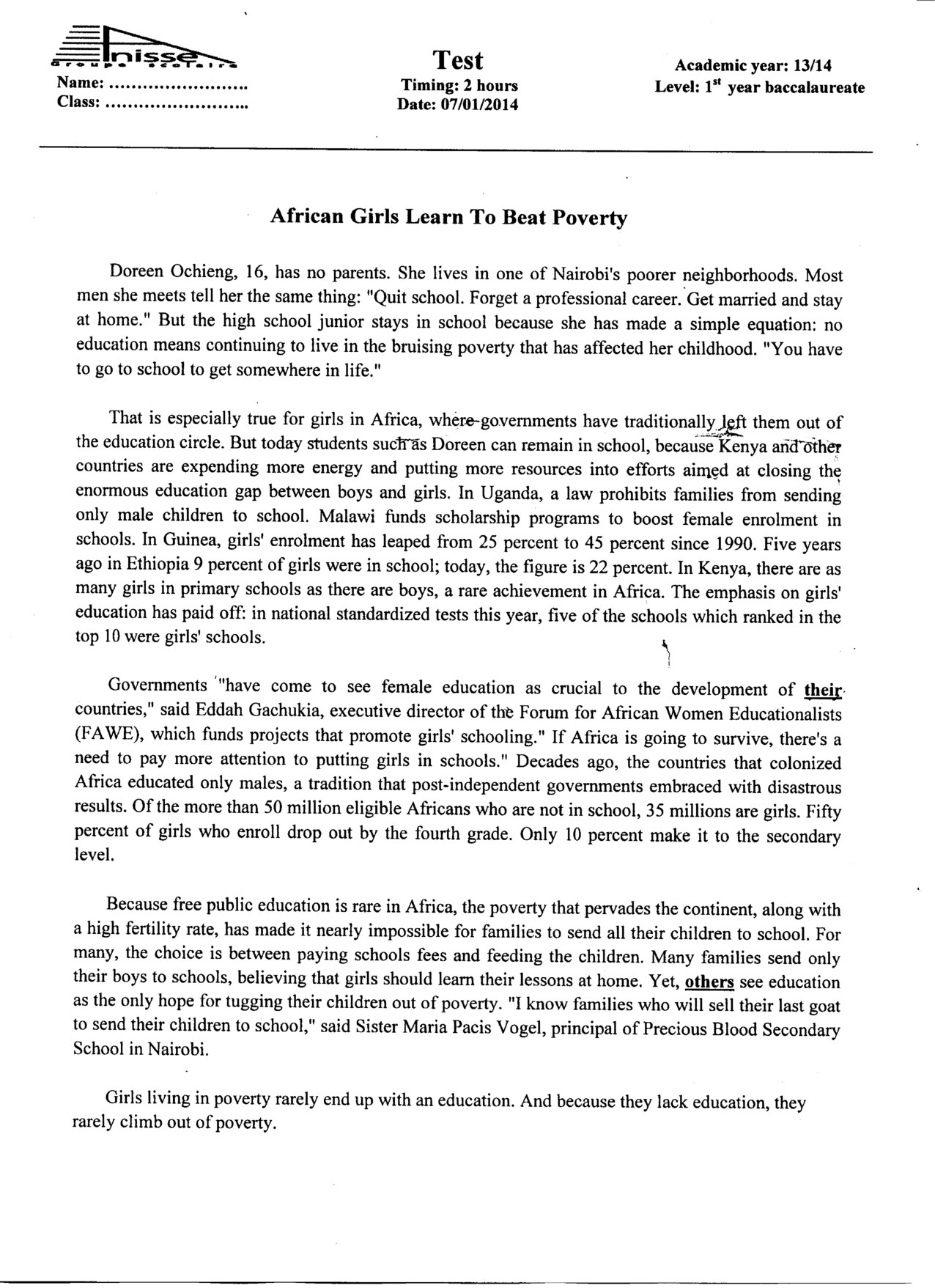Anglais: 1er BAC Lettres et Sciences Humaines