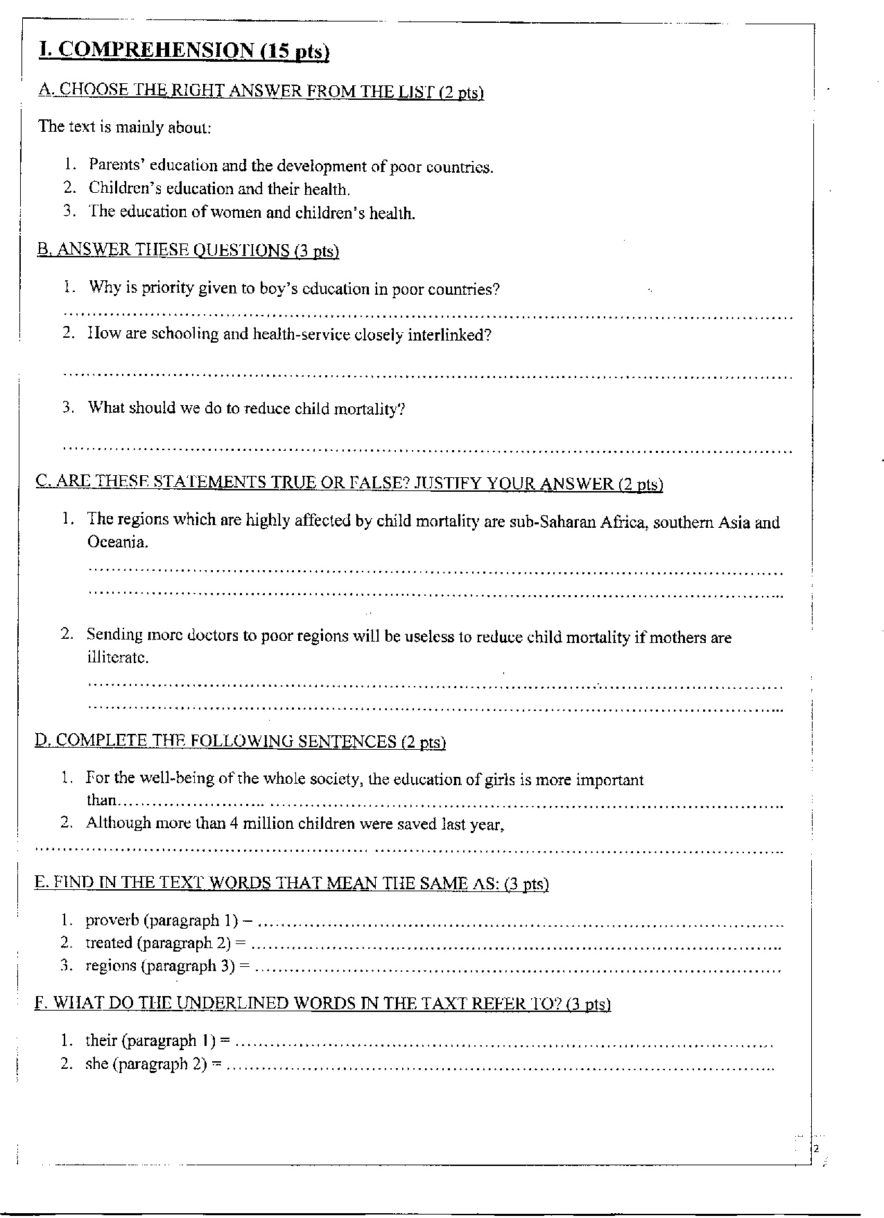 Second term english tests