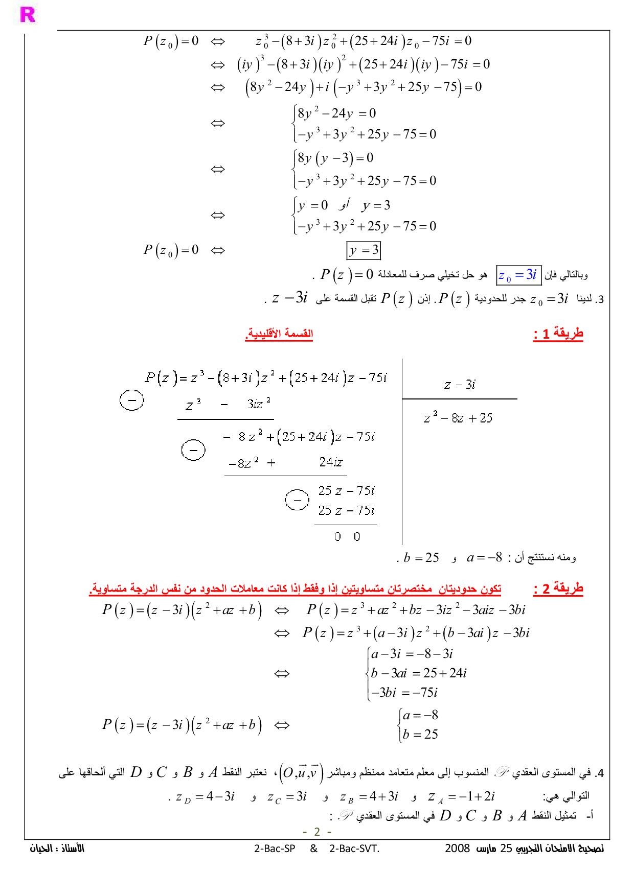 الامتحان التجريبي 1 - الرياضيات ثانية باك علوم وتقنيات (التصحيح)