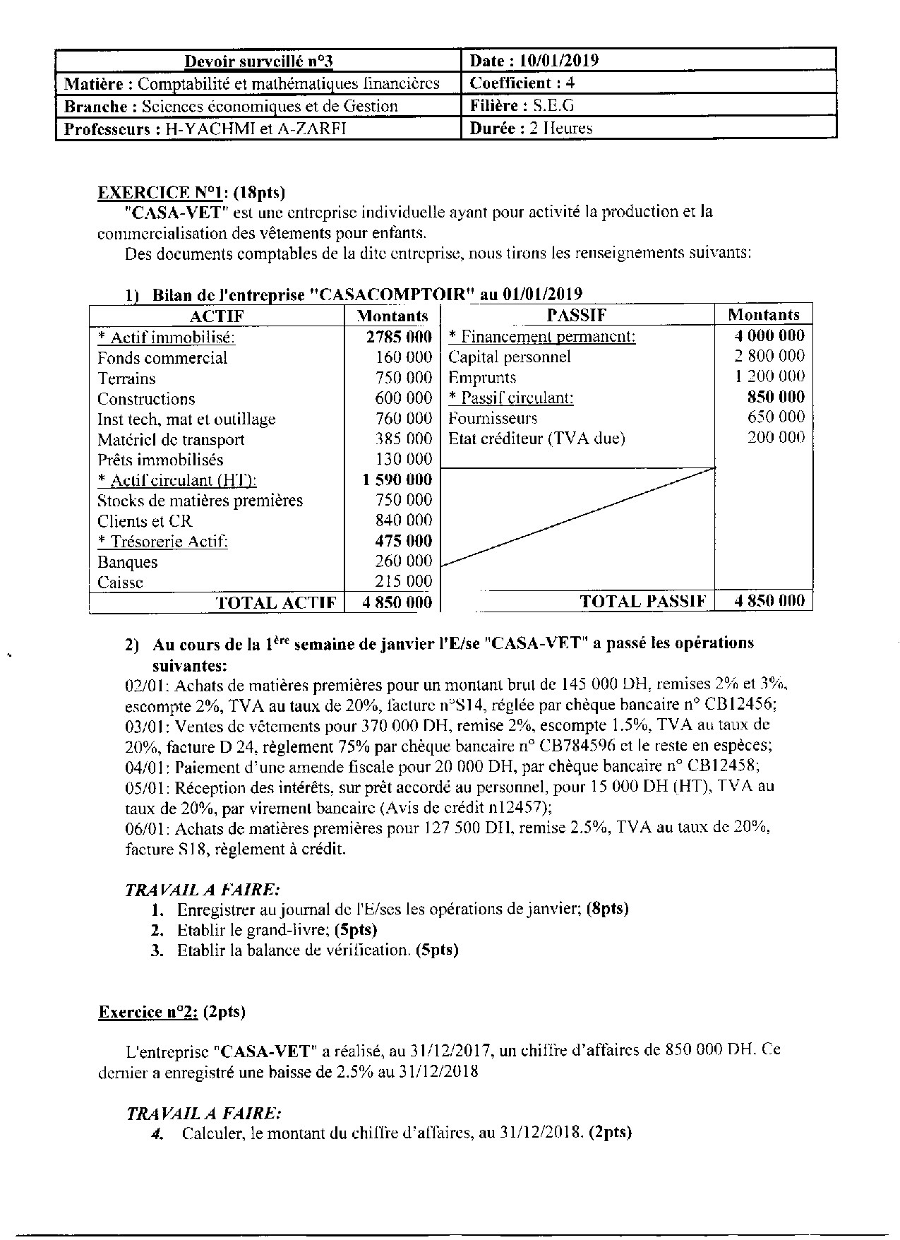 Devoir 3 Modèle 1 - Comptabilité 1 Bac Eco Semestre 1