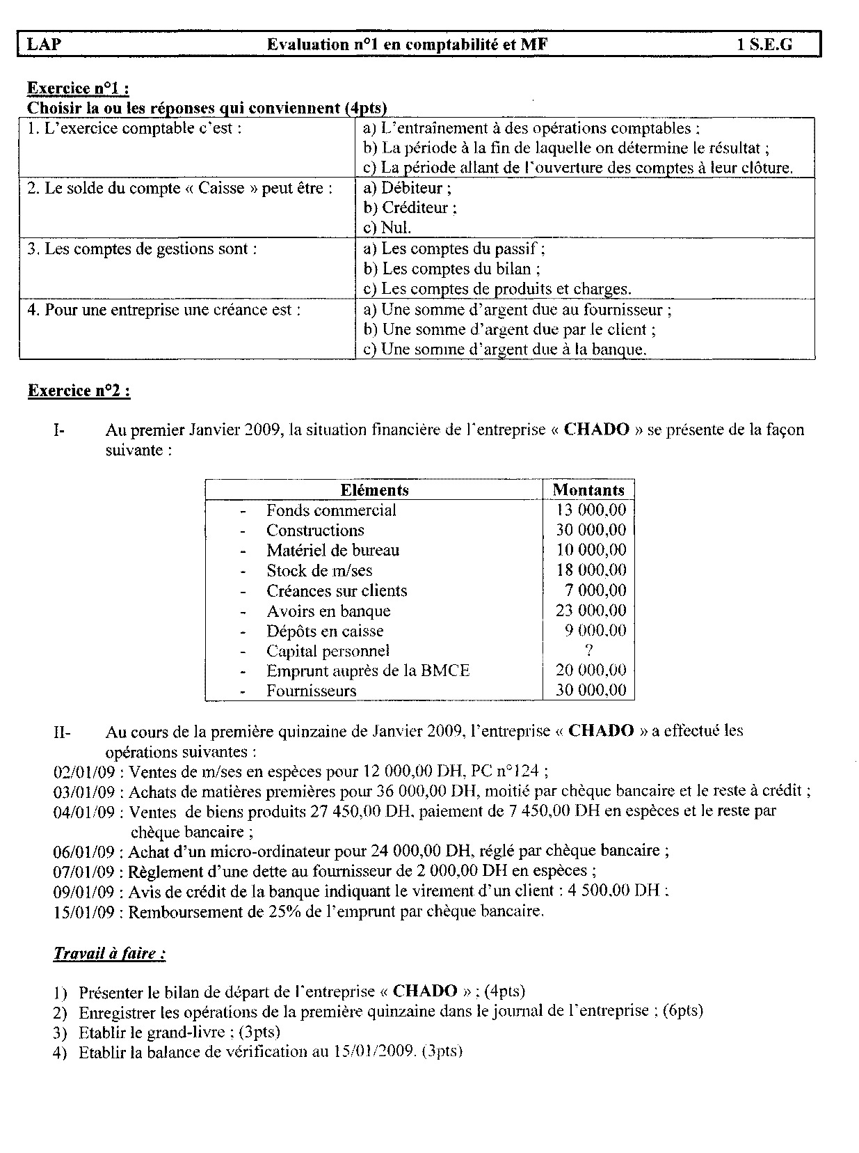 Devoir 1 Modèle 11 - Comptabilité 1 Bac Eco Semestre 1