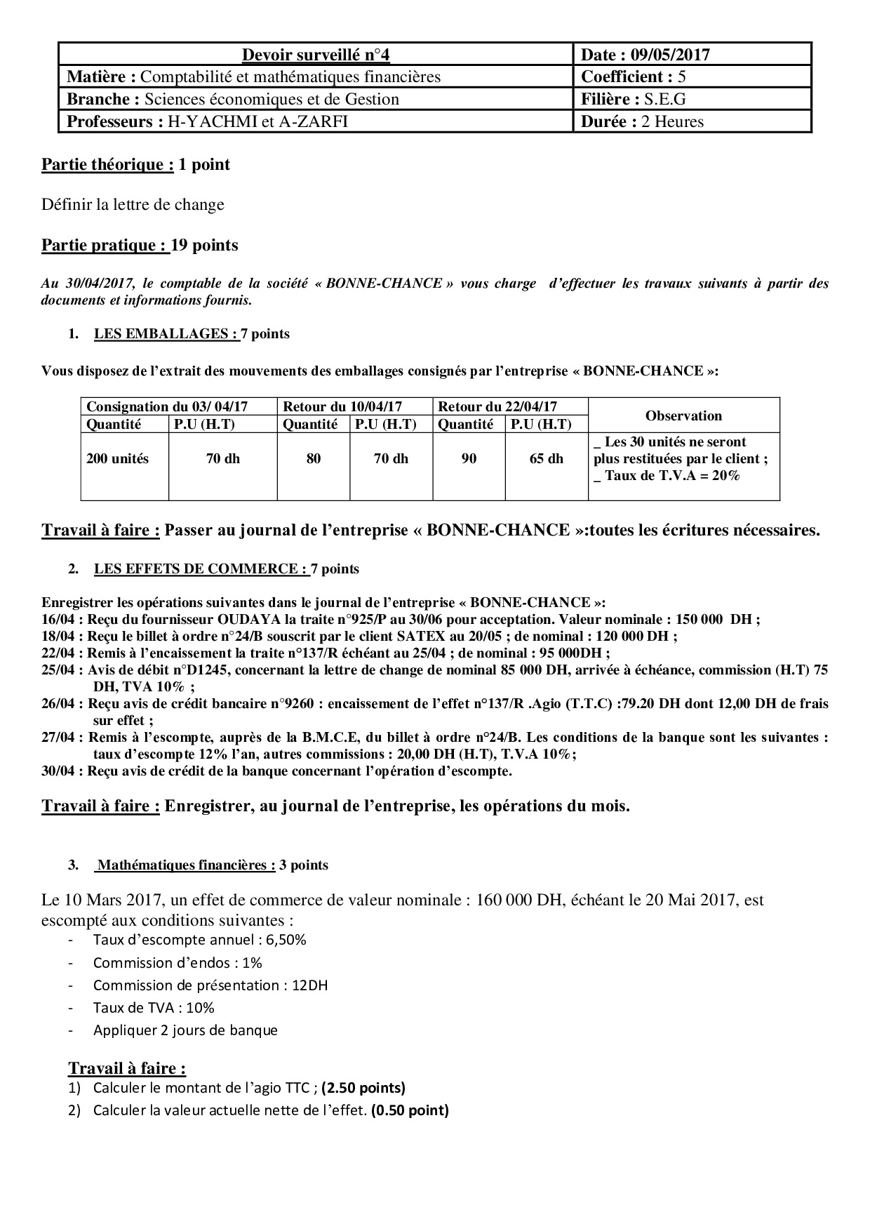 Devoir 2 Modèle 3 - Comptabilité 1 Bac Eco Semestre 2