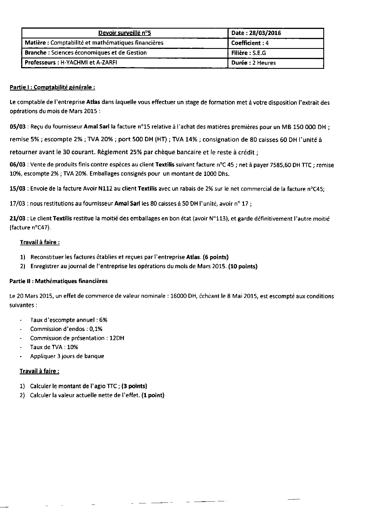 Devoir 2 Modèle 4 - Comptabilité 1 Bac Eco Semestre 2