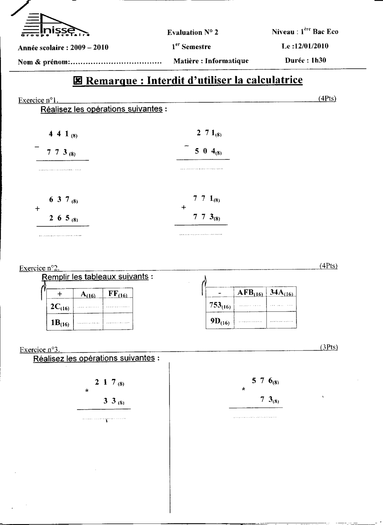 Devoir 2 Modèle 3 - Informatique de gestion 1 Bac Eco Semestre 1