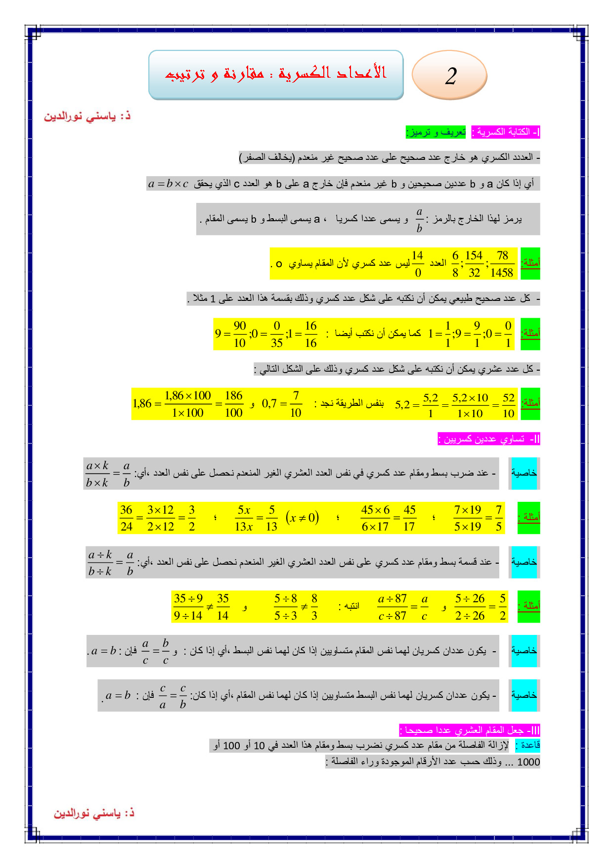 الكتابات الكسرية ومقارنة الكسور