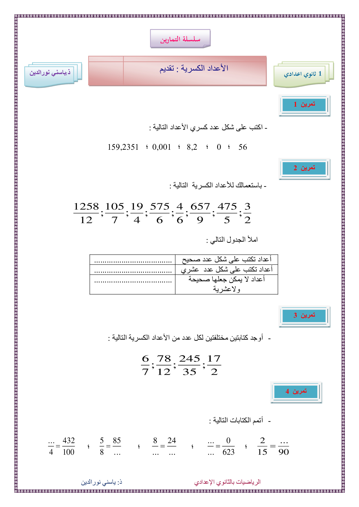 الكتابات الكسرية ومقارنة الكسور - تمارين غير محلولة 1