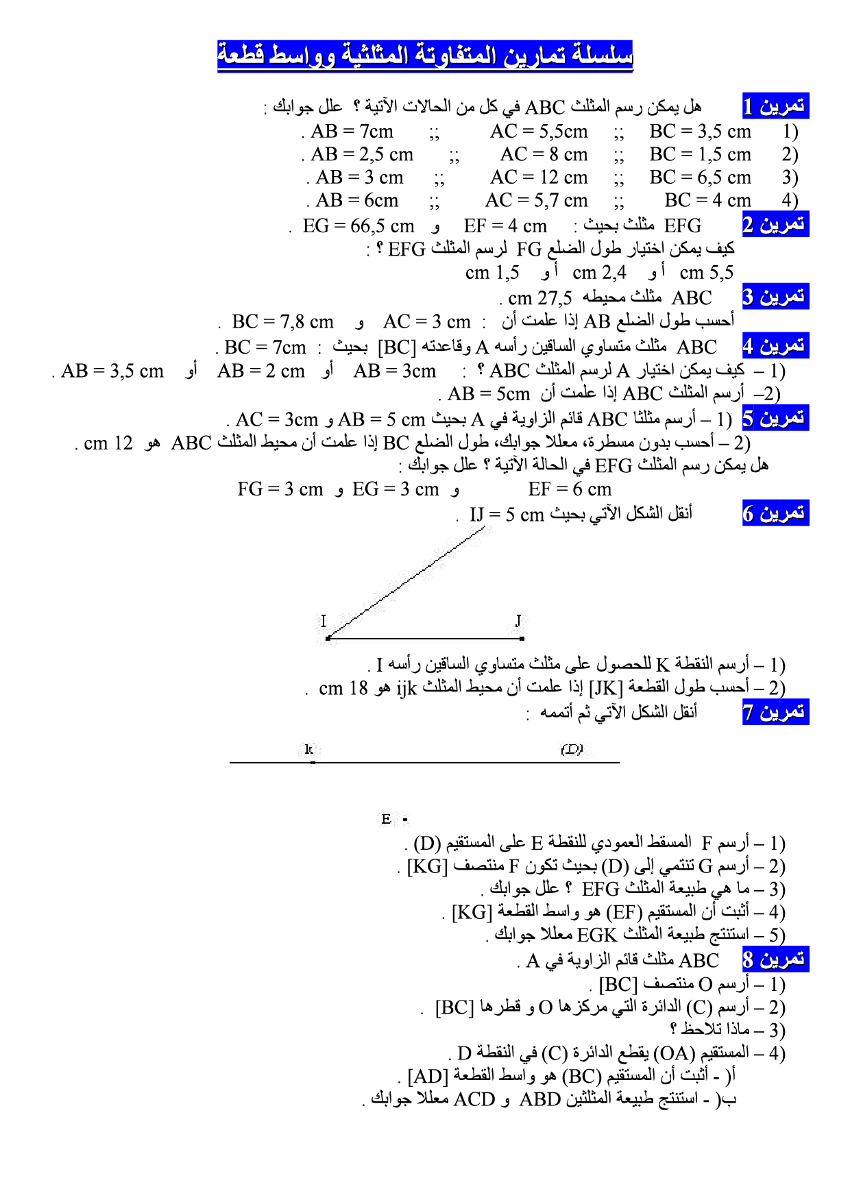 المتفاوتة المثلثية وواسط قطعة - تمارين غير محلولة 2