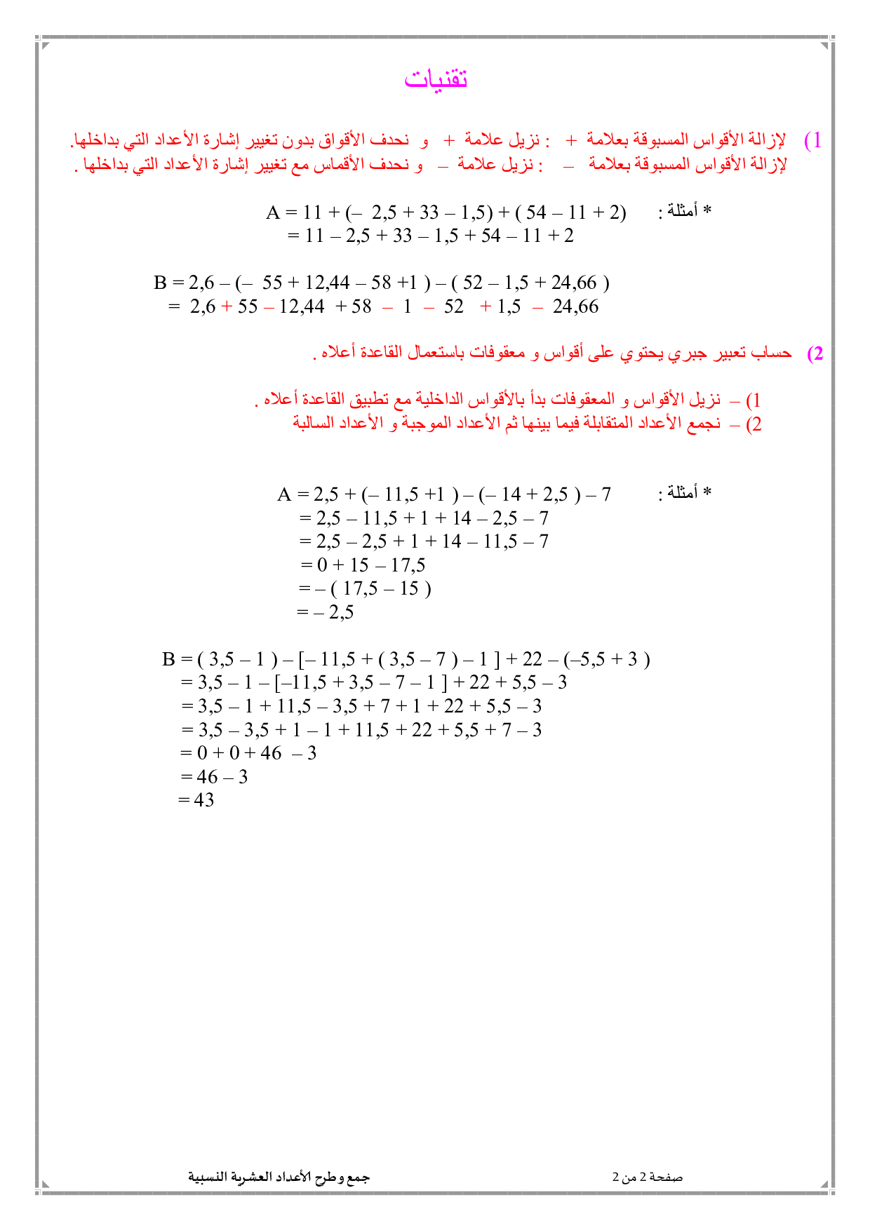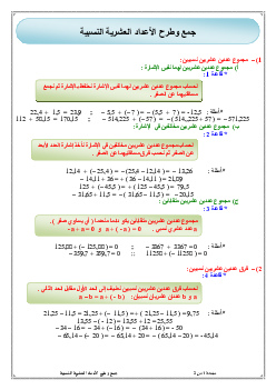 جمع وطرح الأعداد العشرية النسبية - الدرس 1