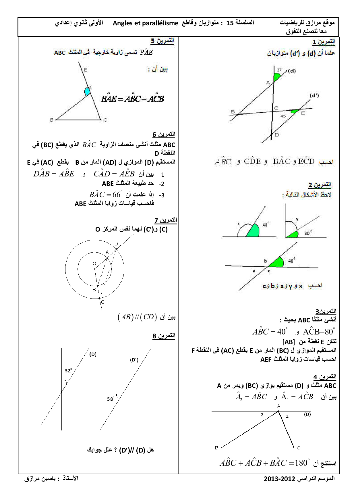 الزوايا المكونة من متوازيين وقاطع - تمارين غير محلولة 5