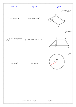 حساب المحيطات والمساحات والحجوم - الدرس 1