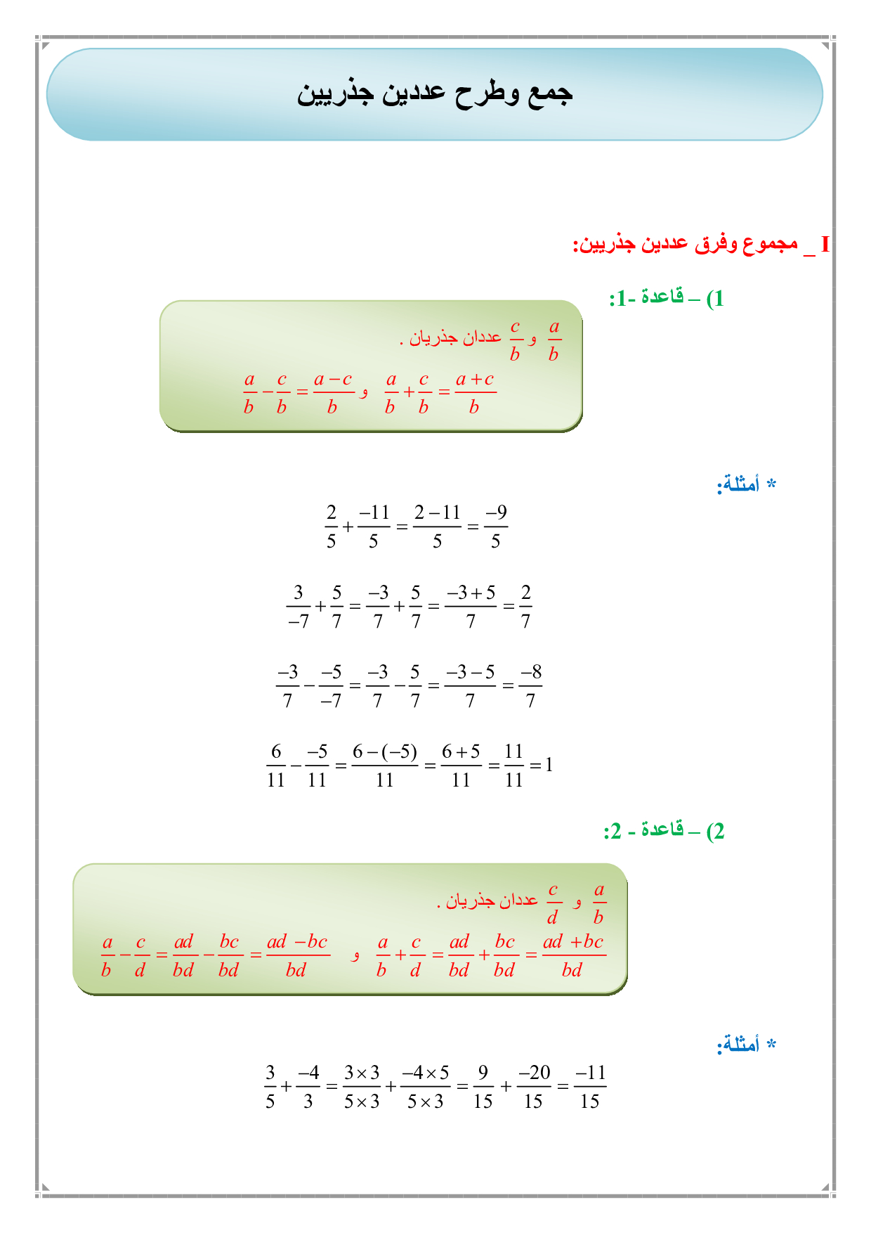 جمع وطرح الأعداد الجذرية - الدرس 1