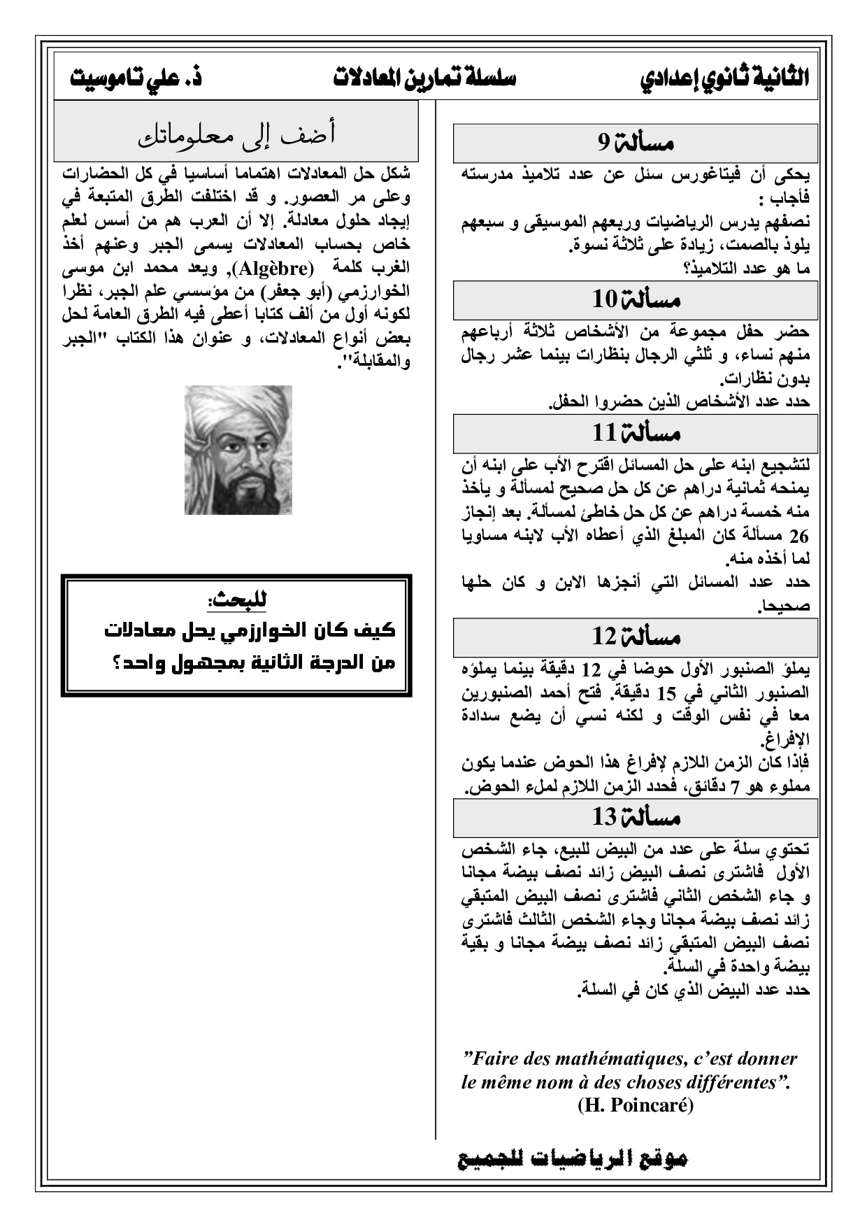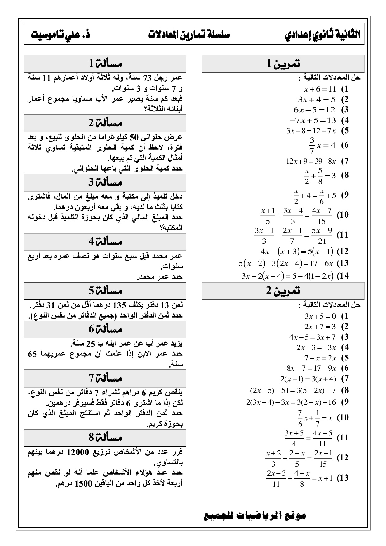 المعادلات - تمارين غير محلولة 3