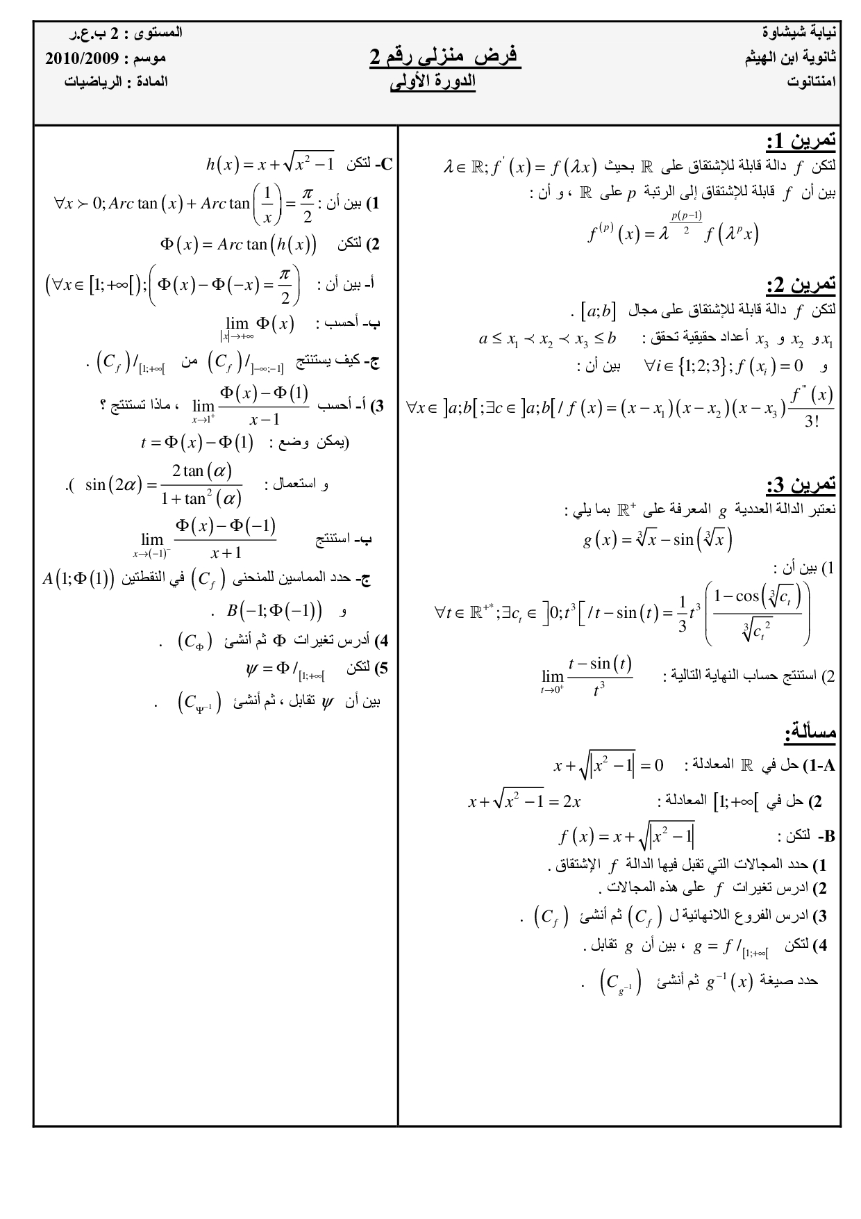 الفرض 2 نموذج 13 - الرياضيات ثانية باك علوم رياضية الدورة الأولى