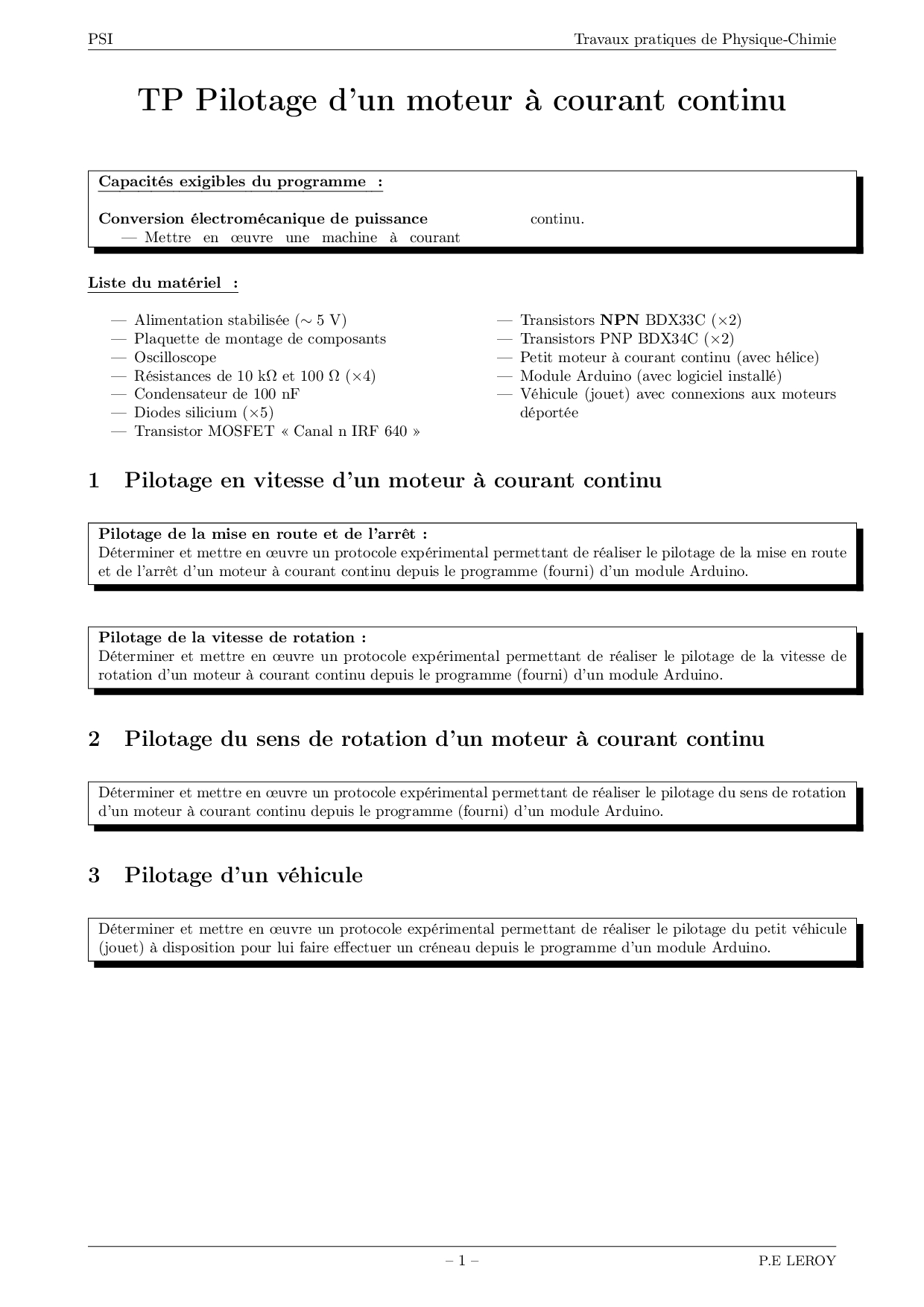 Pilotage d'un moteur à courant continu (Fichiers Arduino) - TP