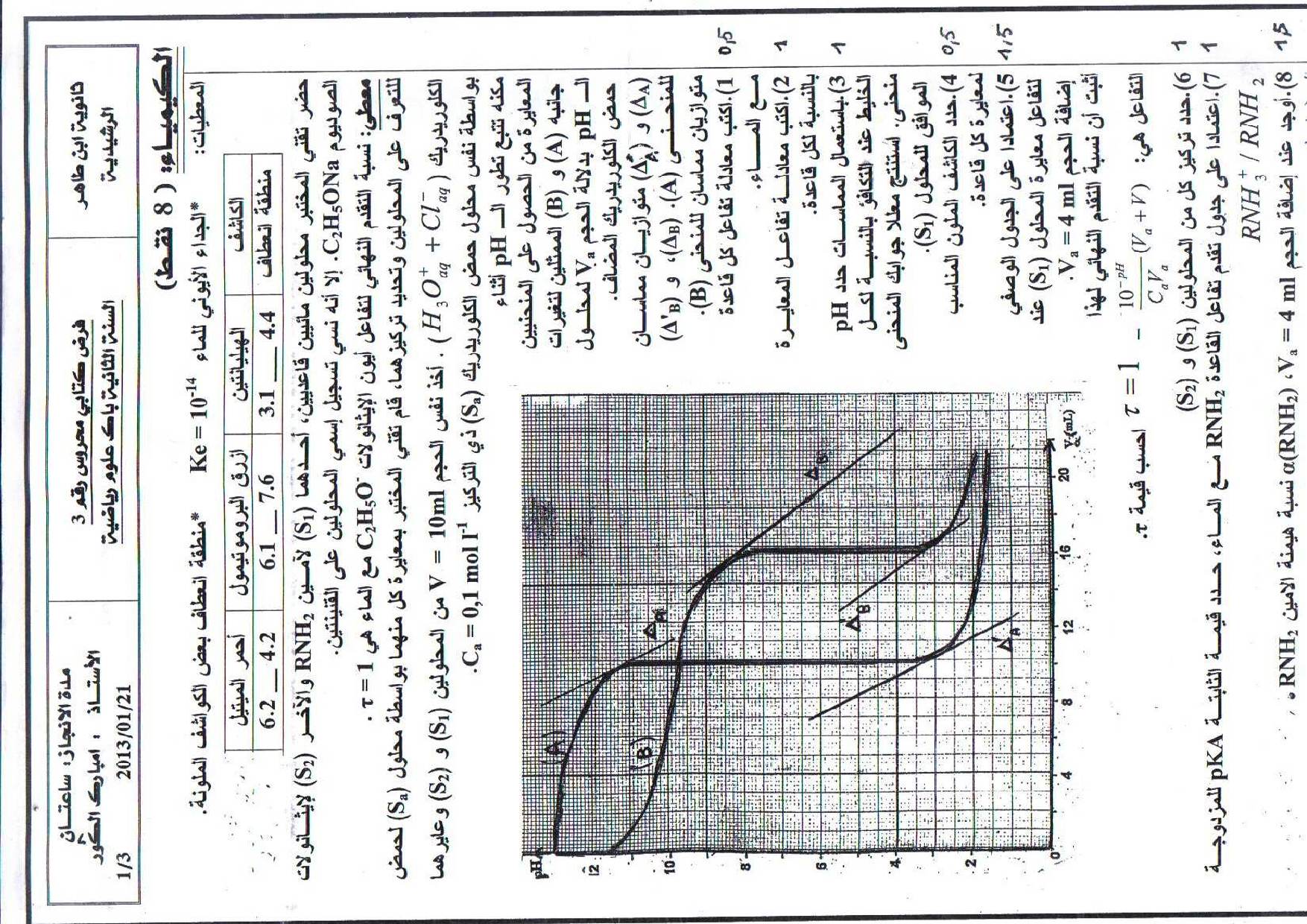 الفرض 3 نموذج 6 - الفيزياء والكيمياء ثانية باك علوم رياضية الدورة الأولى