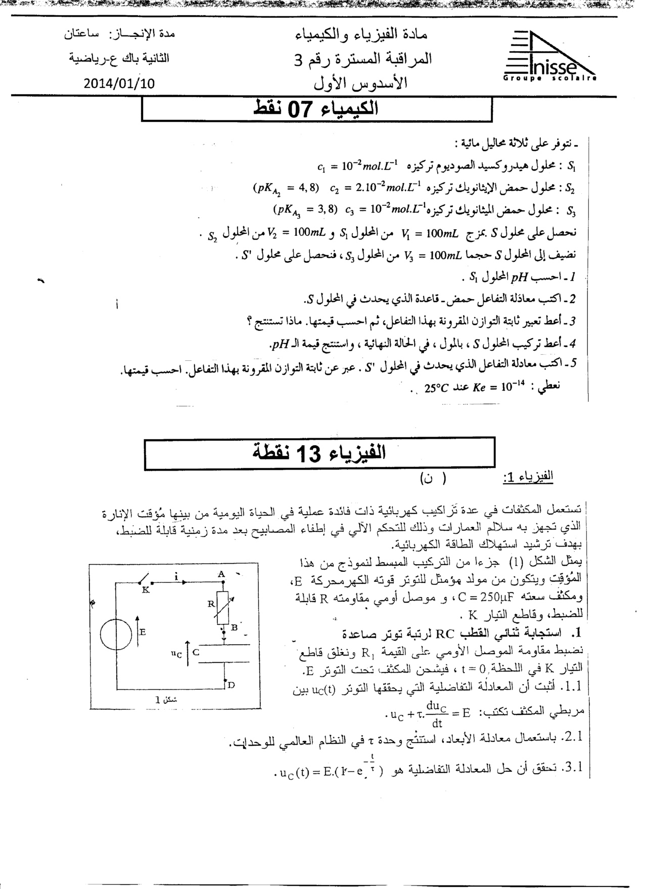 الفرض 3 نموذج 10 - الفيزياء والكيمياء ثانية باك علوم رياضية الدورة الأولى