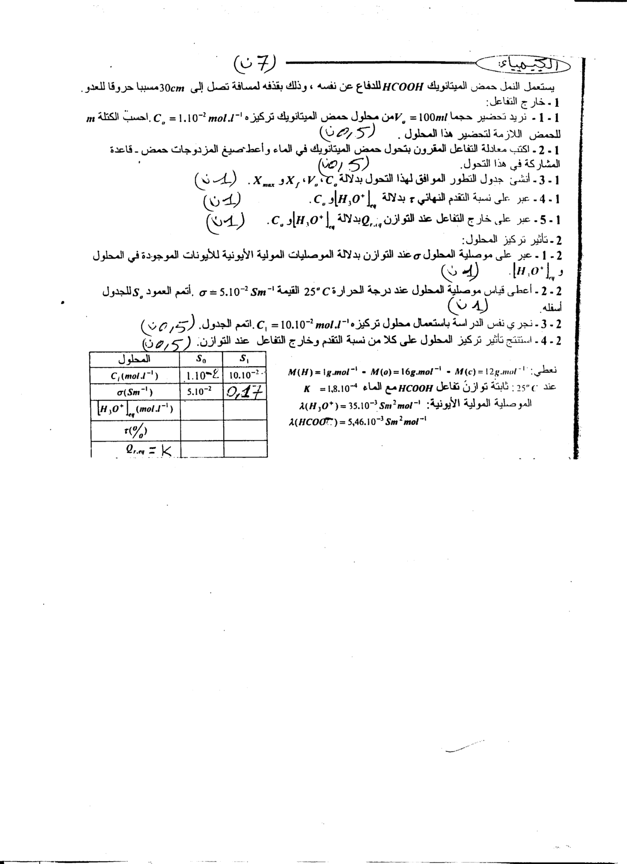 الفرض 3 نموذج 13 - الفيزياء والكيمياء ثانية باك علوم رياضية الدورة الأولى